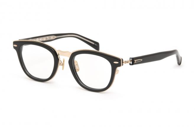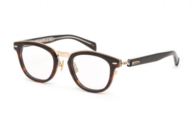 アセテートのフロントに挟まれたチタンチートには、その外周に彫金柄が施されており、