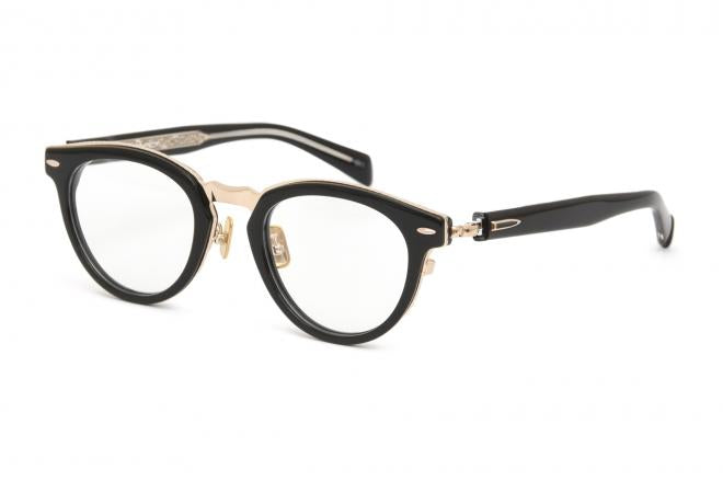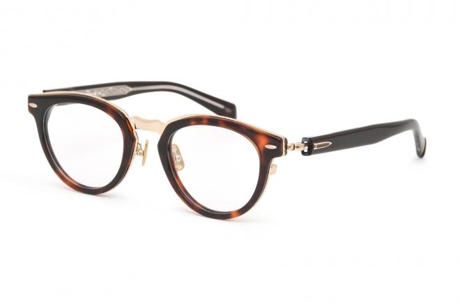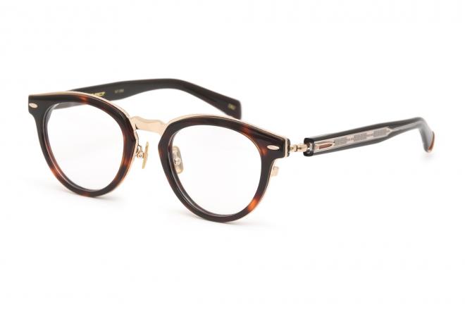 アセテートのフロントに挟まれたチタンチートには、その外周に彫金柄が施されており、