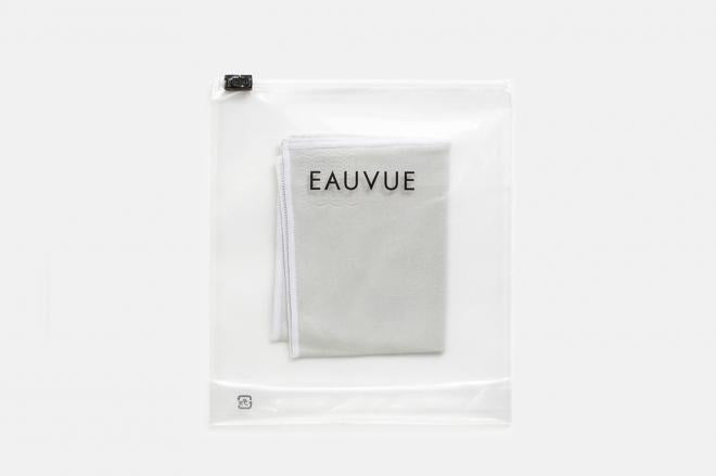 EAUVUE PRISM COLLECTION 気温差ですぐに曇るメガネのレンズ。そんなレンズ部分に数滴の水分を含ませてからこのクリーナーで拭き上げることで、曇り止め効果を発揮する超極細繊維の布製クリーナー。 ANTI-FOG CLEANER(150×180mm)×1枚 使用回数目安:300回程度