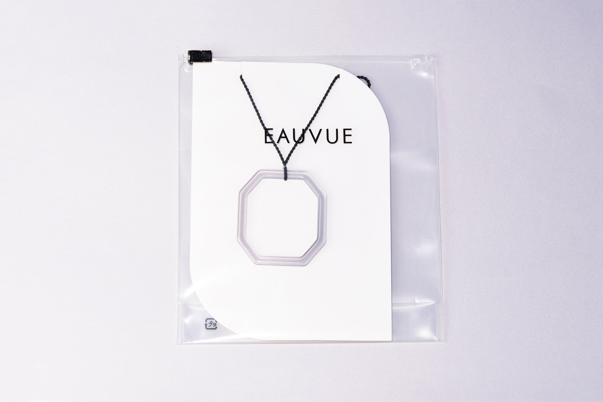 眼鏡の掛け外しが多い方・サングラスを掛ける方向けに製作したアイウェアループは、トップ部分に眼鏡のテンプルを引っ掛けて使用するネックレスタイプ。工場で使用機会を失い廃棄予定のアクリル樹脂端材を粉砕し、再度素材として生き返らせたアップサイクル素材を成形、丁寧に研磨を重ねて仕上げています。眼鏡の世界では馴染み深い「オクタゴン(八角形)」に、肌馴染みよくワードローブにも合わせやすいオリジナルカラーを調色しました。