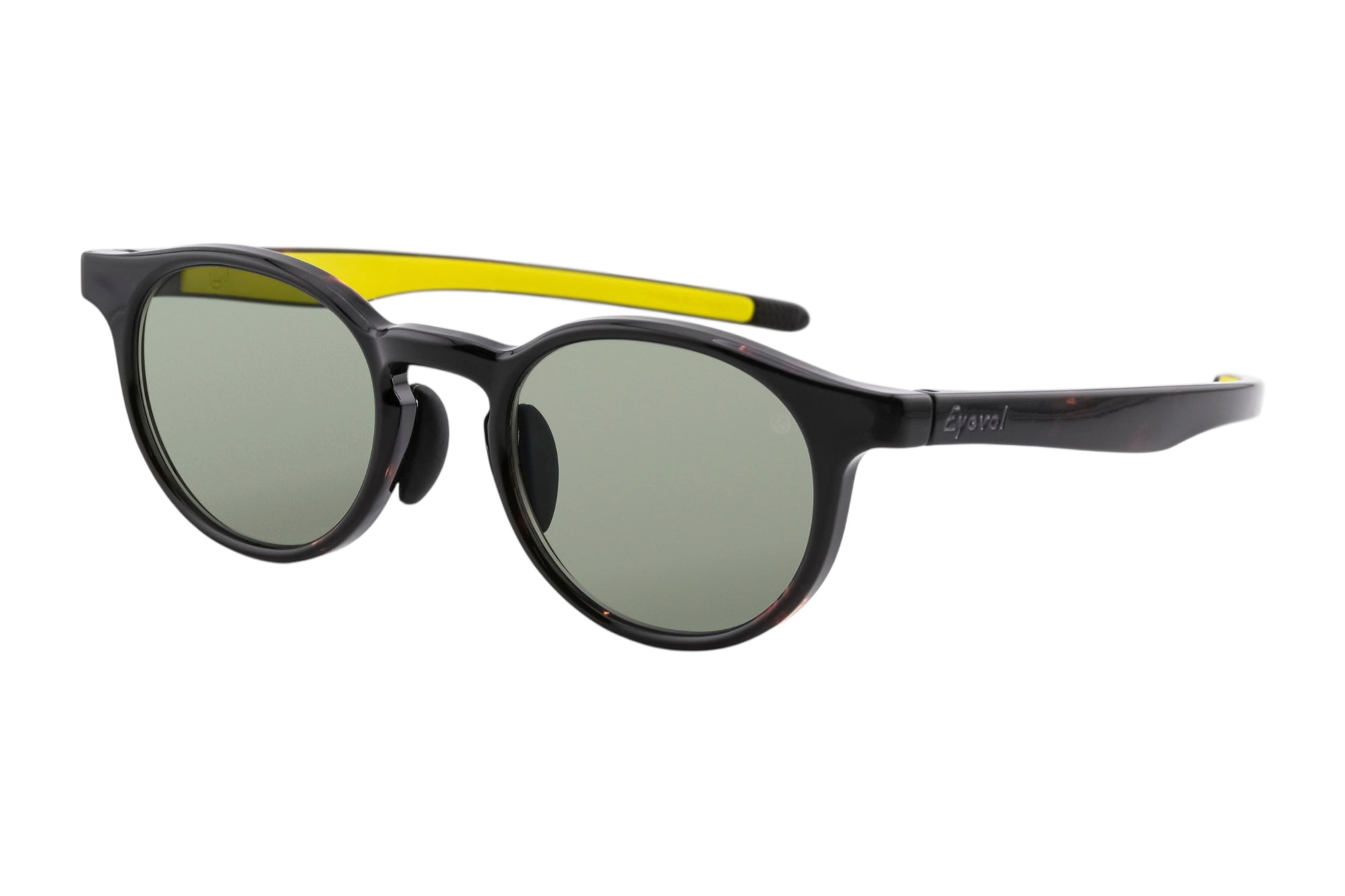 顔馴染みの良いやや横長なレンズシェイプが特徴で、バランスを重視したデザインは高い汎用性と、男女共にかけやすいサイジングも魅力。