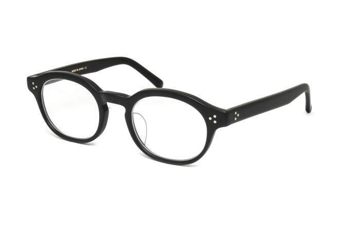 フレンチヴィンテージを主に、様々なヴィンテージフレームから抽出した要素を複合。ボリューム感を強調した智元(フロント両サイド)に対し、細いリムラインを組み合わせて相反する印象をひとつのデザインで味わえるレクタンバルシェイプ(レクタングル-長方形-とオーバルをあわせたシェイプ)。