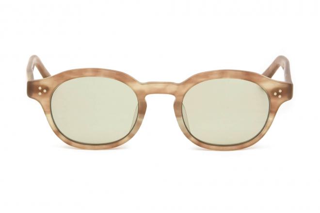フレンチヴィンテージを主に、様々なヴィンテージフレームから抽出した要素を複合。ボリューム感を強調した智元(フロント両サイド)に対し、細いリムラインを組み合わせて相反する印象をひとつのデザインで味わえるレクタンバルシェイプ(レクタングル-長方形-とオーバルをあわせたシェイプ)。