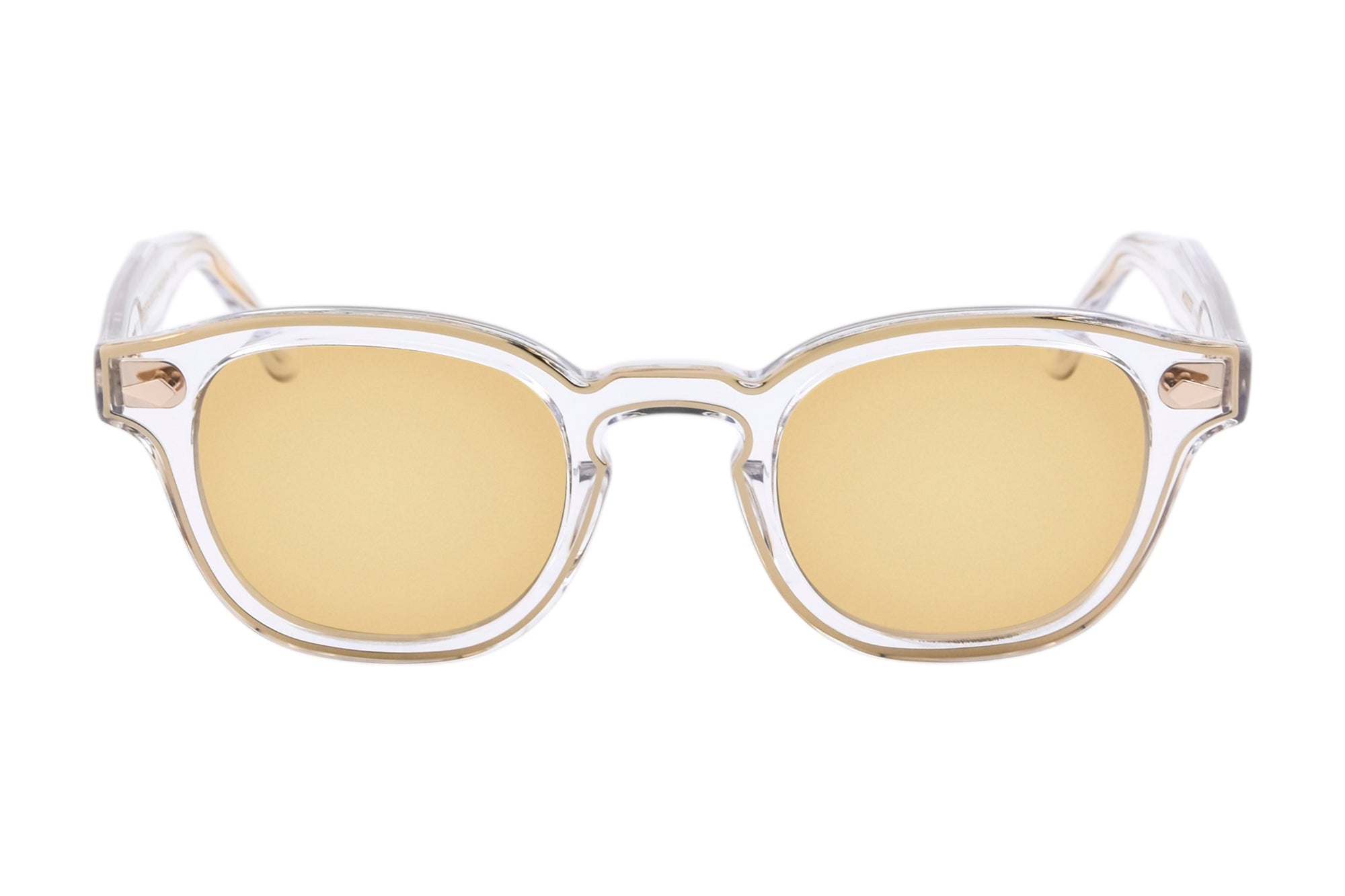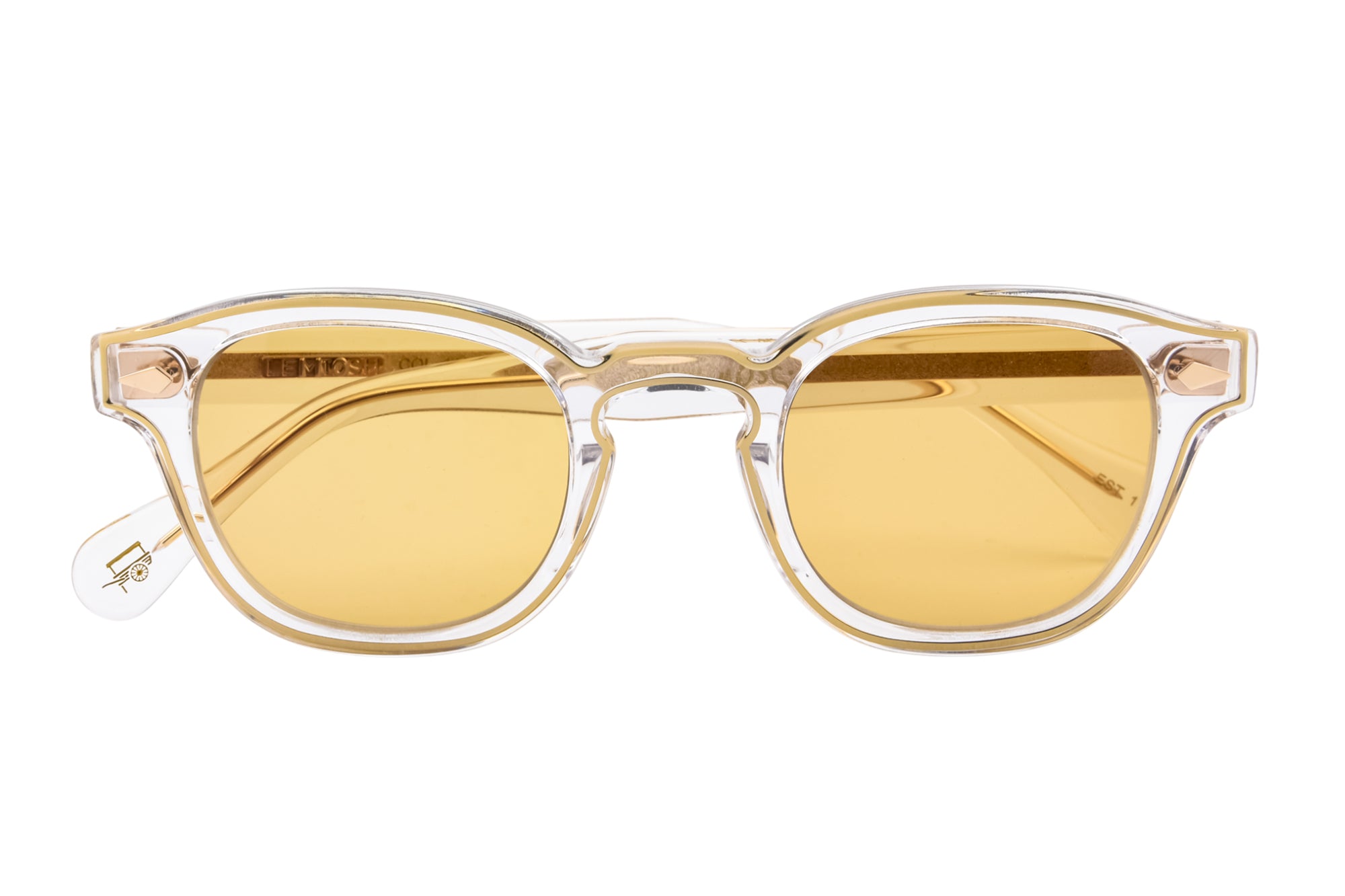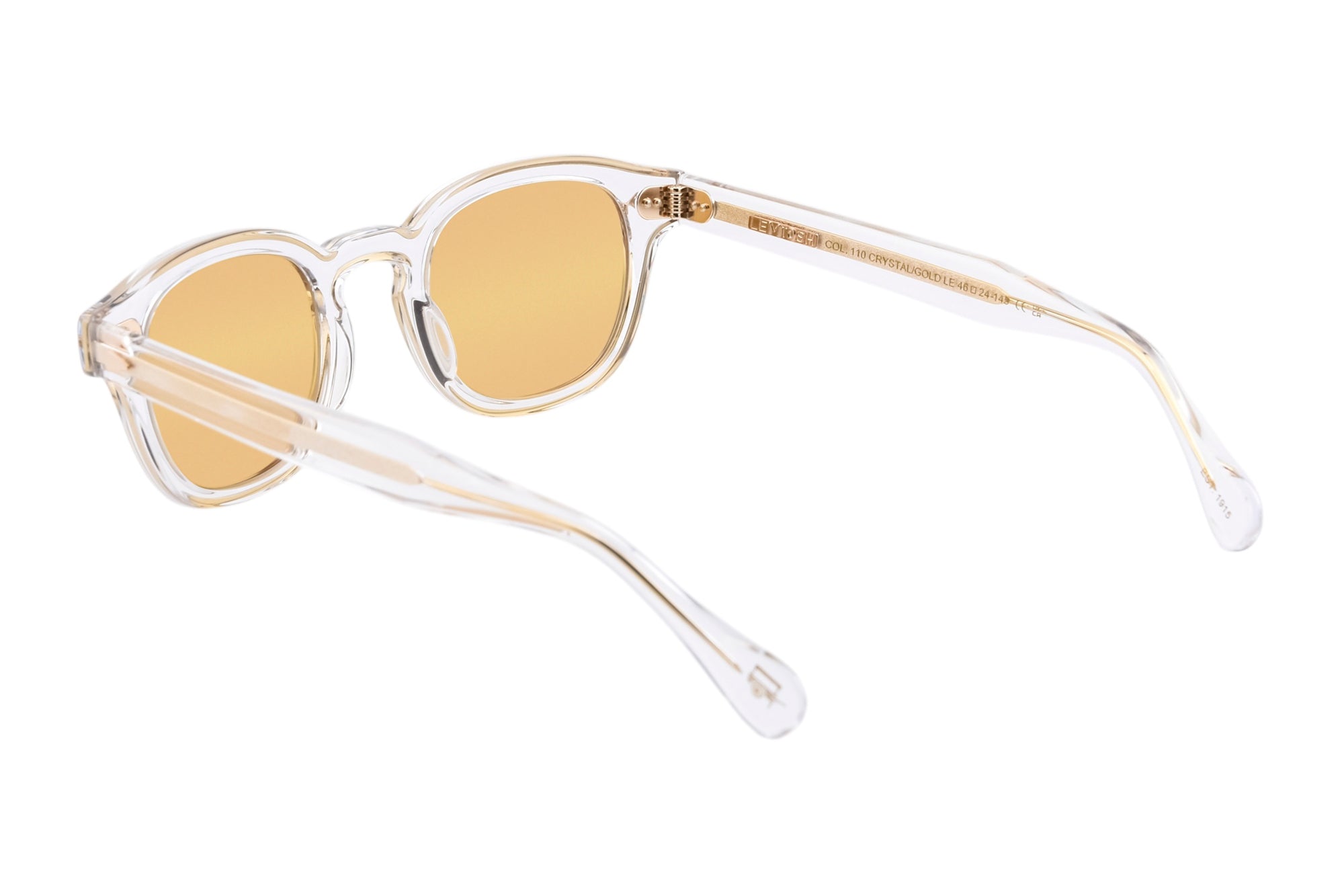 クリアフレームのシルエットに沿って、ゴールドのワイヤー(メタルパーツ)が封入されたスペシャル仕様。テンプルにはカスタムゴールドのLEMTOSH 110プレートがあしらわれ、ブランドの節目の年を表す「110」の文字が隠されています。