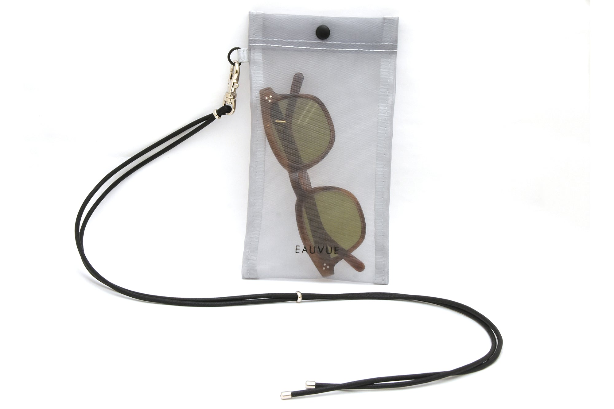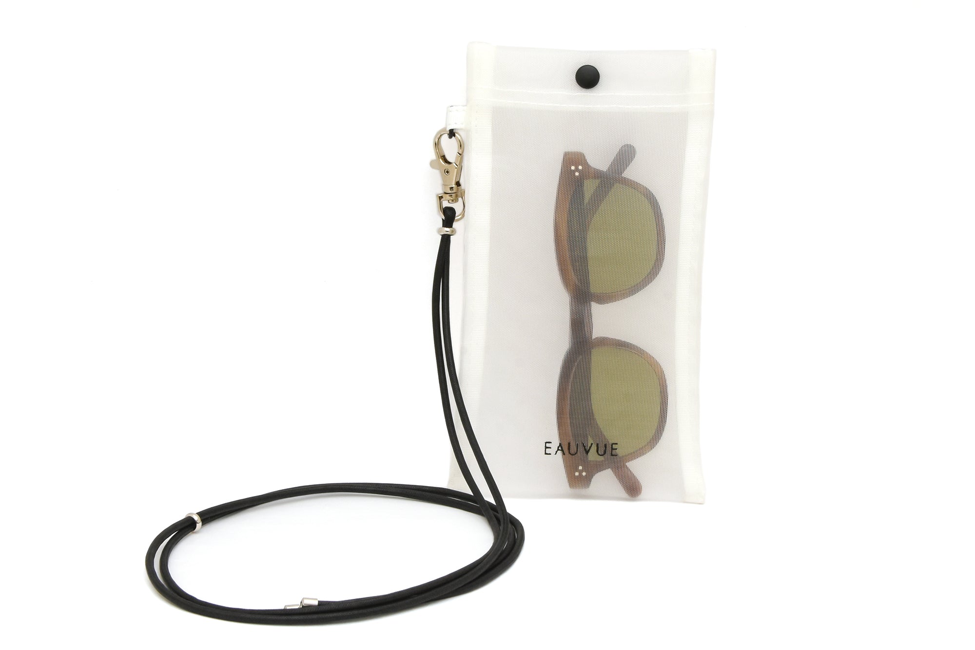 中に何が入っているか透けて見える視認性とアイウェアやサングラスのみでなく、様々なものを気軽に収納可能な汎用性が特徴なケース。シンプルなコード付きで、手ぶらでお出掛けされたい近年のスタイルに寄り添った仕様です。