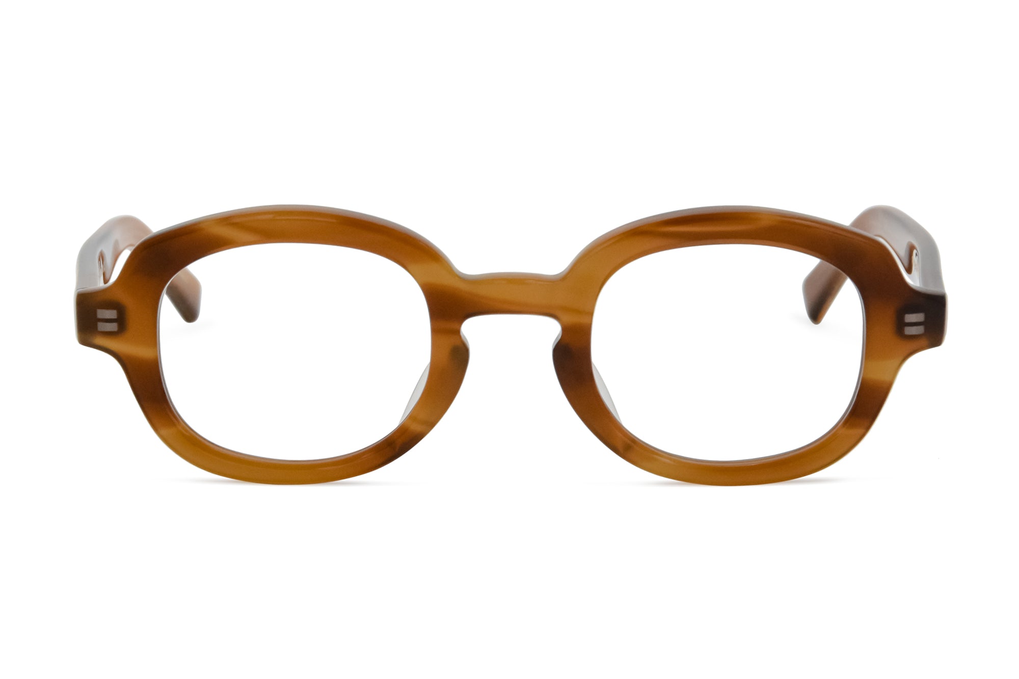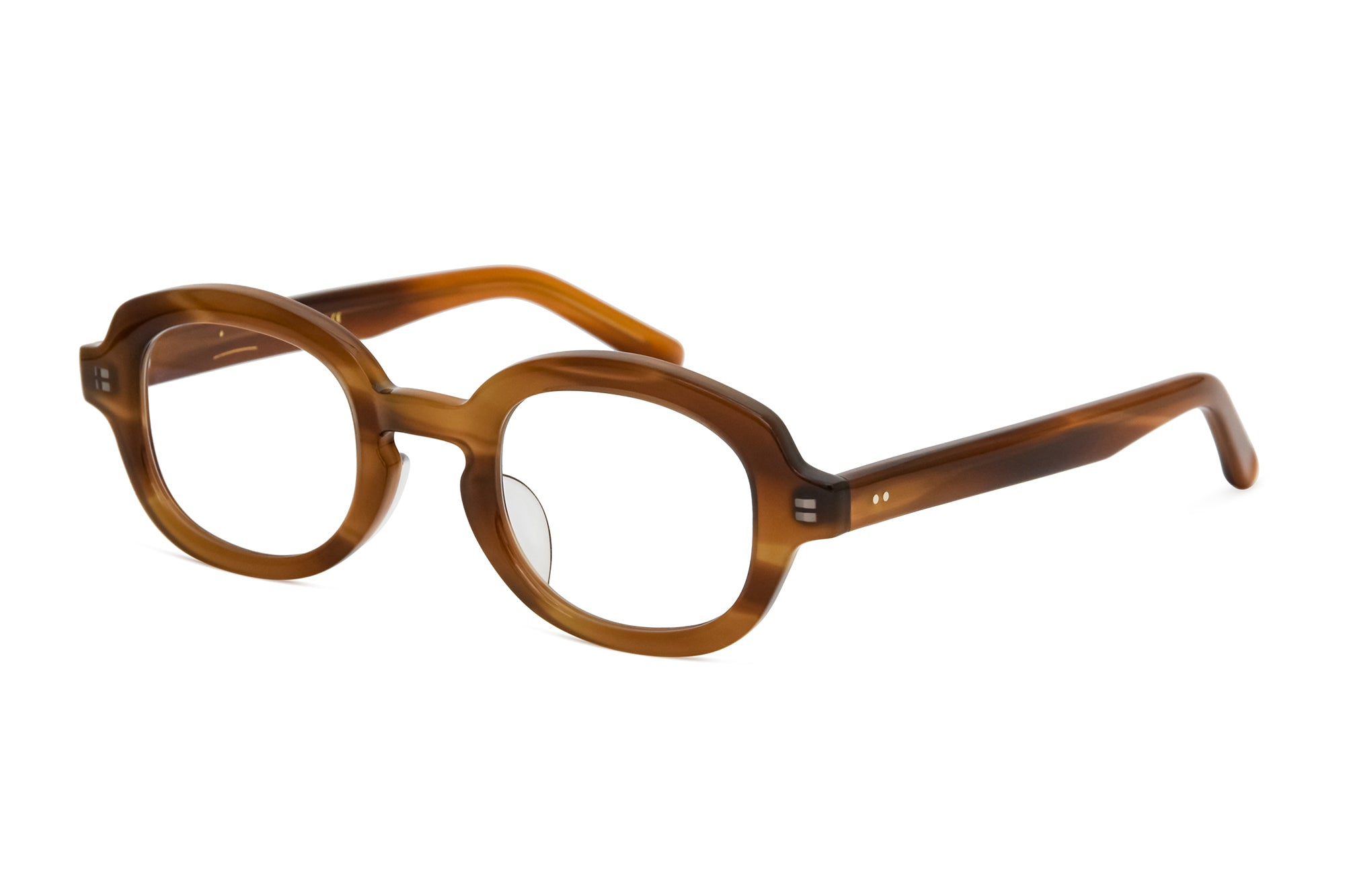 フレーム上部は厚みを持たせ丸みを減らした一方、下部では緩やかなカーブを採用することで、当時のロック音楽のインパクトと歌詞に秘められた繊細なテーマをデザインに落とし込みました。リムの内側はレンズに向かってカッティングを施すことでリムラインとのコントラストが生まれ、ベーシックな雰囲気のスクエアをカリズマティックなフレームへとチェンジさせた。