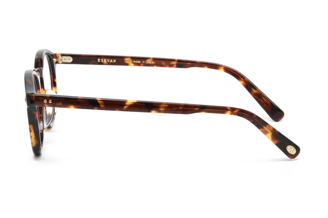 50年代のボストンシェイプをEYEVAN流に表現。凸状にしてメッキをすることで、ヴィンテージ調の贅沢なつくりを再現したフロントのカシメ飾りは、50年代のクラシックカーからイメージした新しいパーツ。