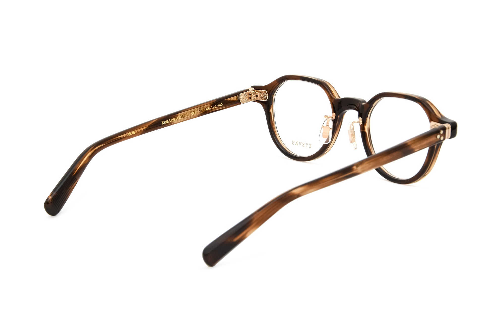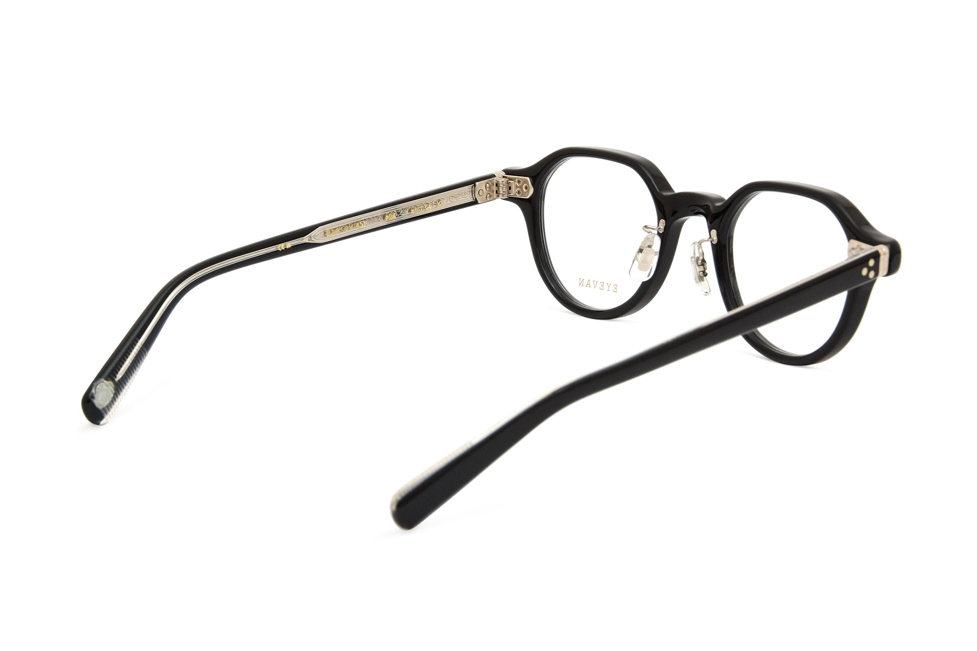 1940年代のヨロイ(フロントとテンプルの接合部)位置が低くテンプルが真横に着く、“サイドマウントスタイル”のフレンチヴィンテージが着想源のフレーム。テンプル合口には、モデルChandlerに使用された断面にエングレービングをいれた合口飾りを合わせ、テンプルはこのモデルの為にテンプルエンドに向かい断面が立体的になだらかな台形となるよう新たにデザインを起こした。