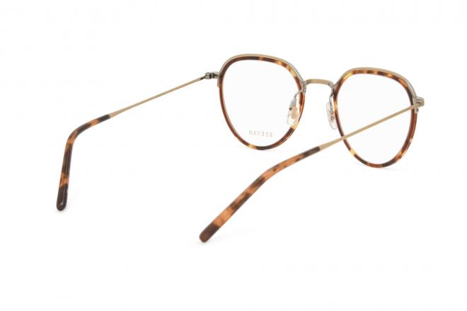 チタンシートをブリッジ一体で抜いたフロントリムに、正面視が最も薄い1.6mmのプラスチック製のリムをナイロールの糸で固定したコンビネーションフレーム。