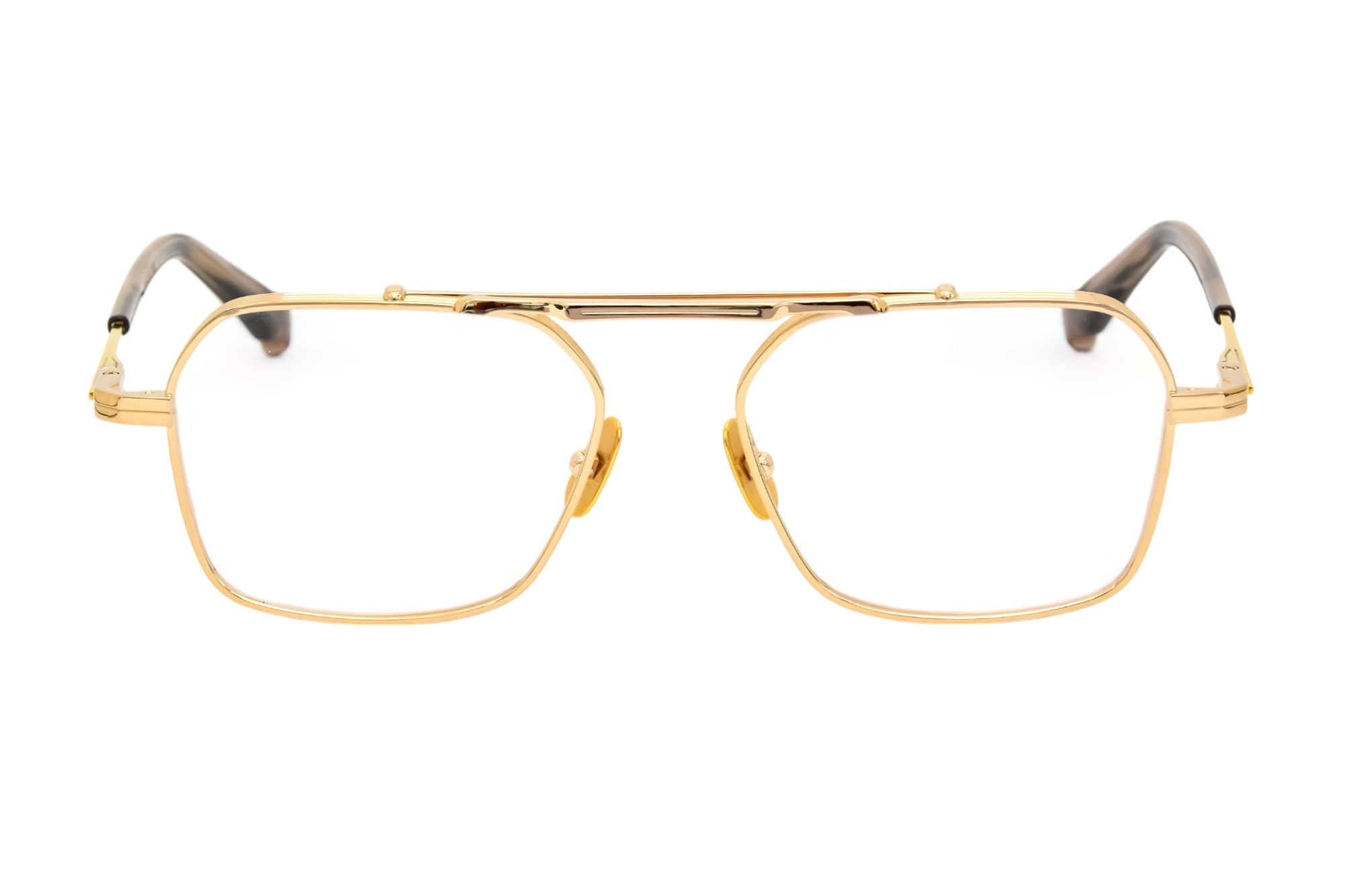 パーツの随所にエッジを効かせた立体的なフロントと、対照的な均一幅のテンプルが織りなすメリハリから締まりのあるアイウェアを演出する。厚みのあるリムをあえて削り出したことによって完成する形状や、テンプル開閉時の意匠美を追求し、あらゆる方向からも心地良い造形へと昇華させている。