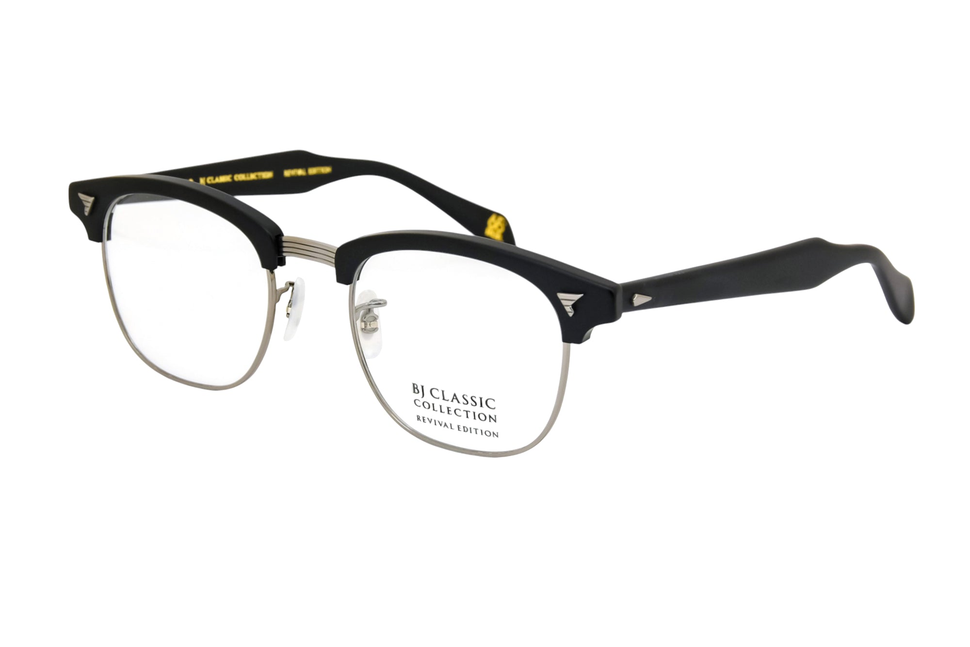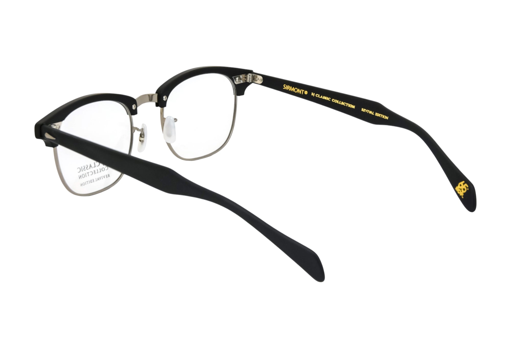 ブローパーツとテンプルにはマットブラックを、ブリッジ、飾り鋲、リムパーツには当時のヴィンテージ感を演出するため、あえてくすんだ深みのあるガンメタルを採用。マットブラックとガンメタルの組み合わせがヴィンテージとモダンな雰囲気を両立させ、洗練されたシックな印象を与えます。
