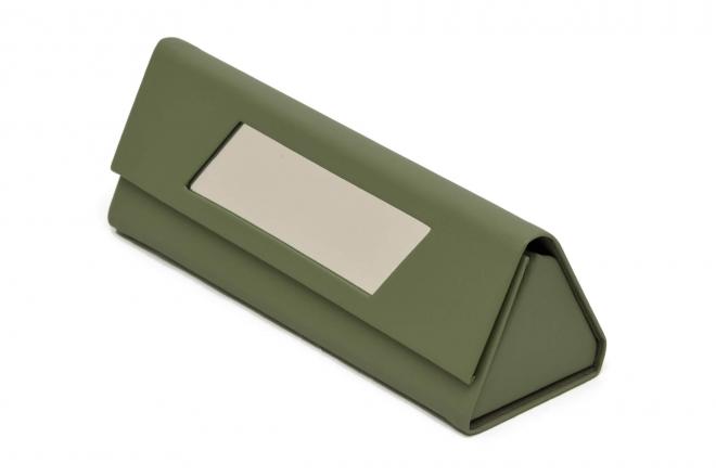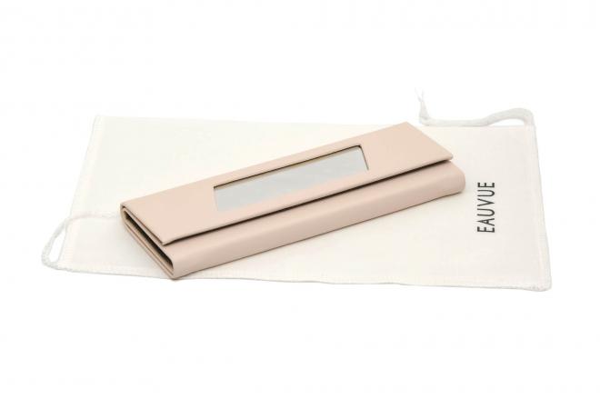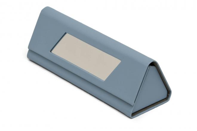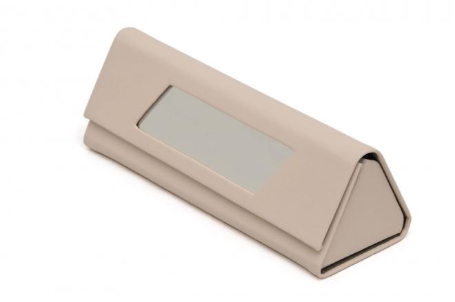 ミラーが付いている部分を開けて、サイドを立ち上げると三角柱型のケースになります。使用しない時は、折り畳むとフラットになります。