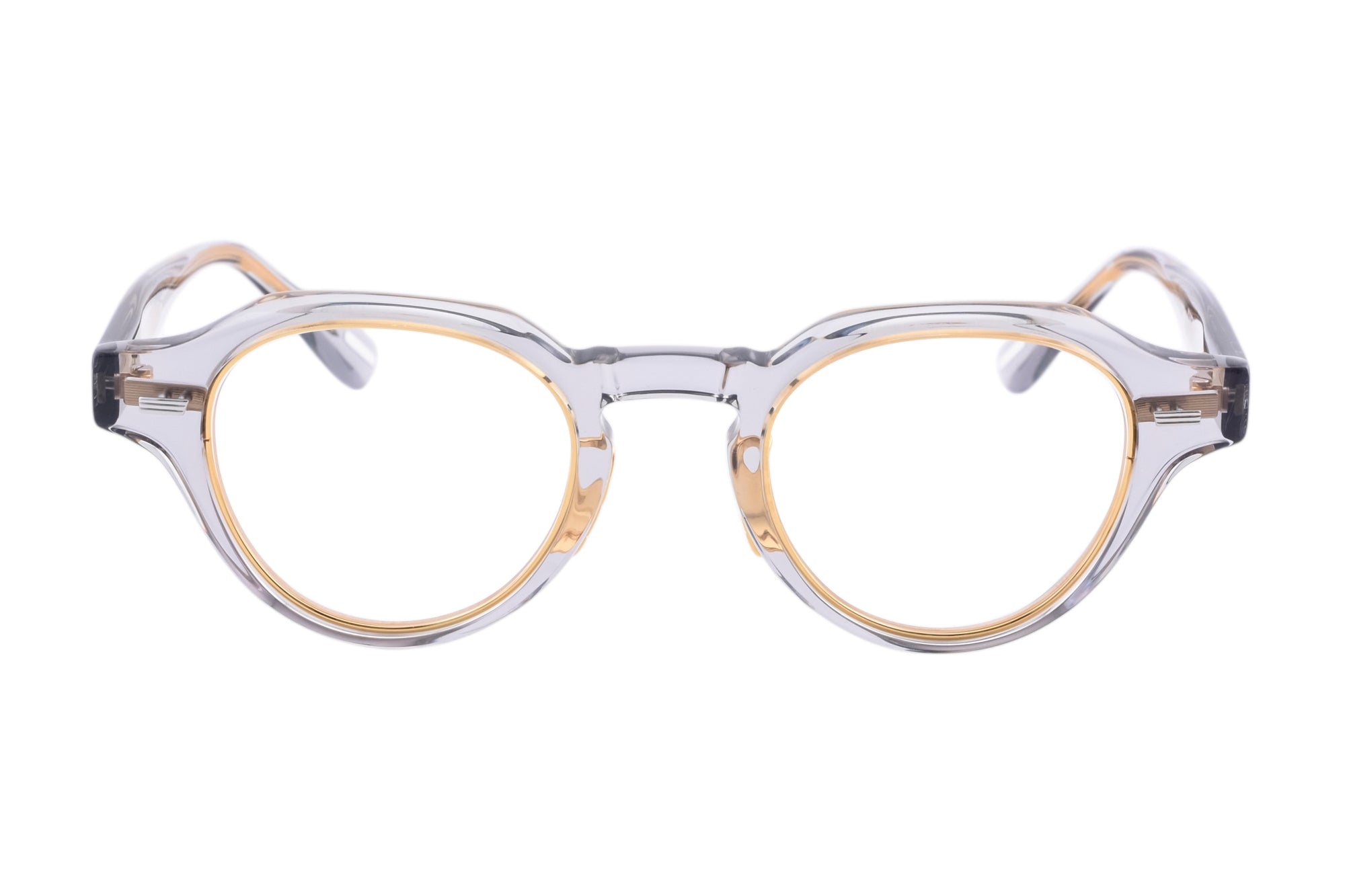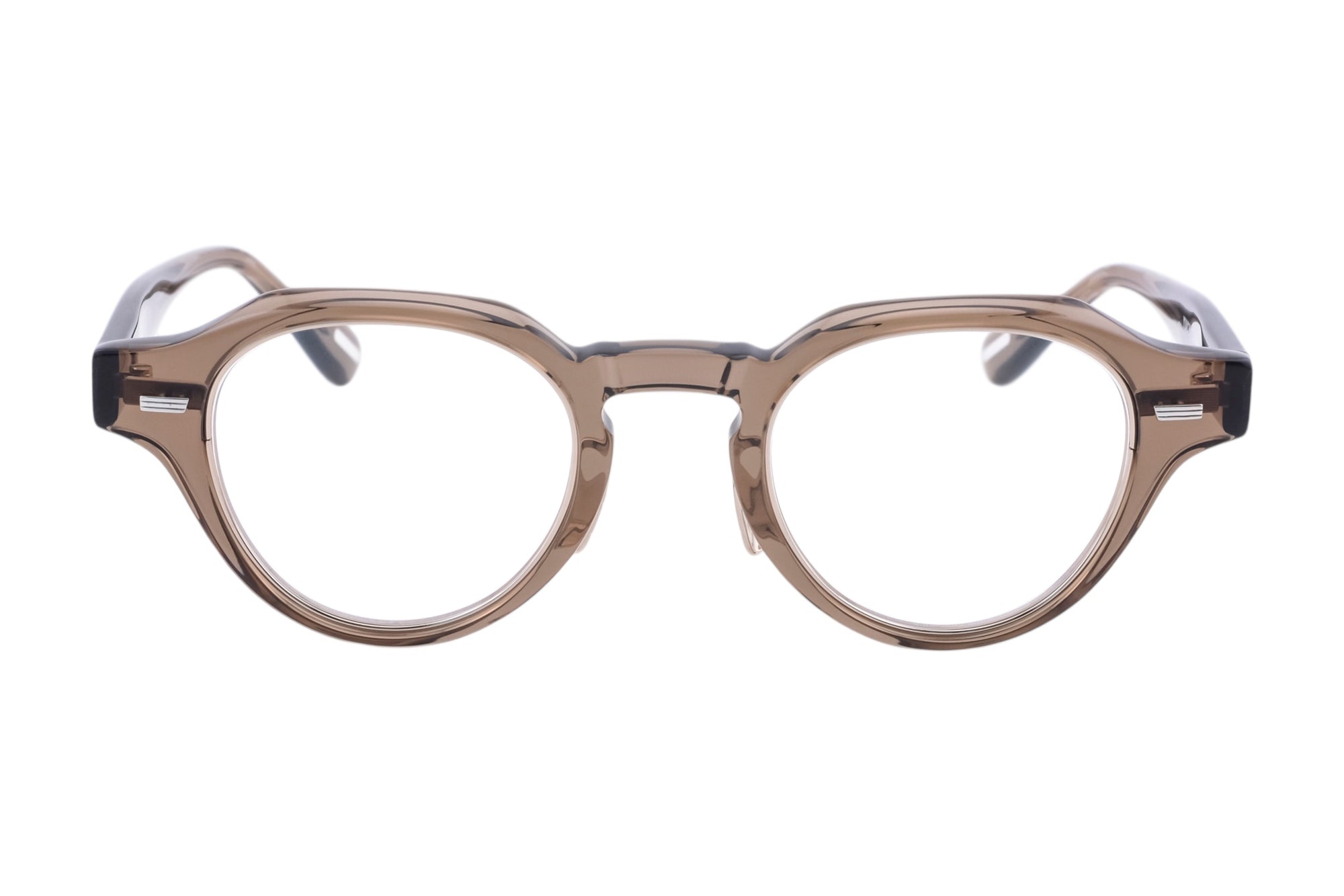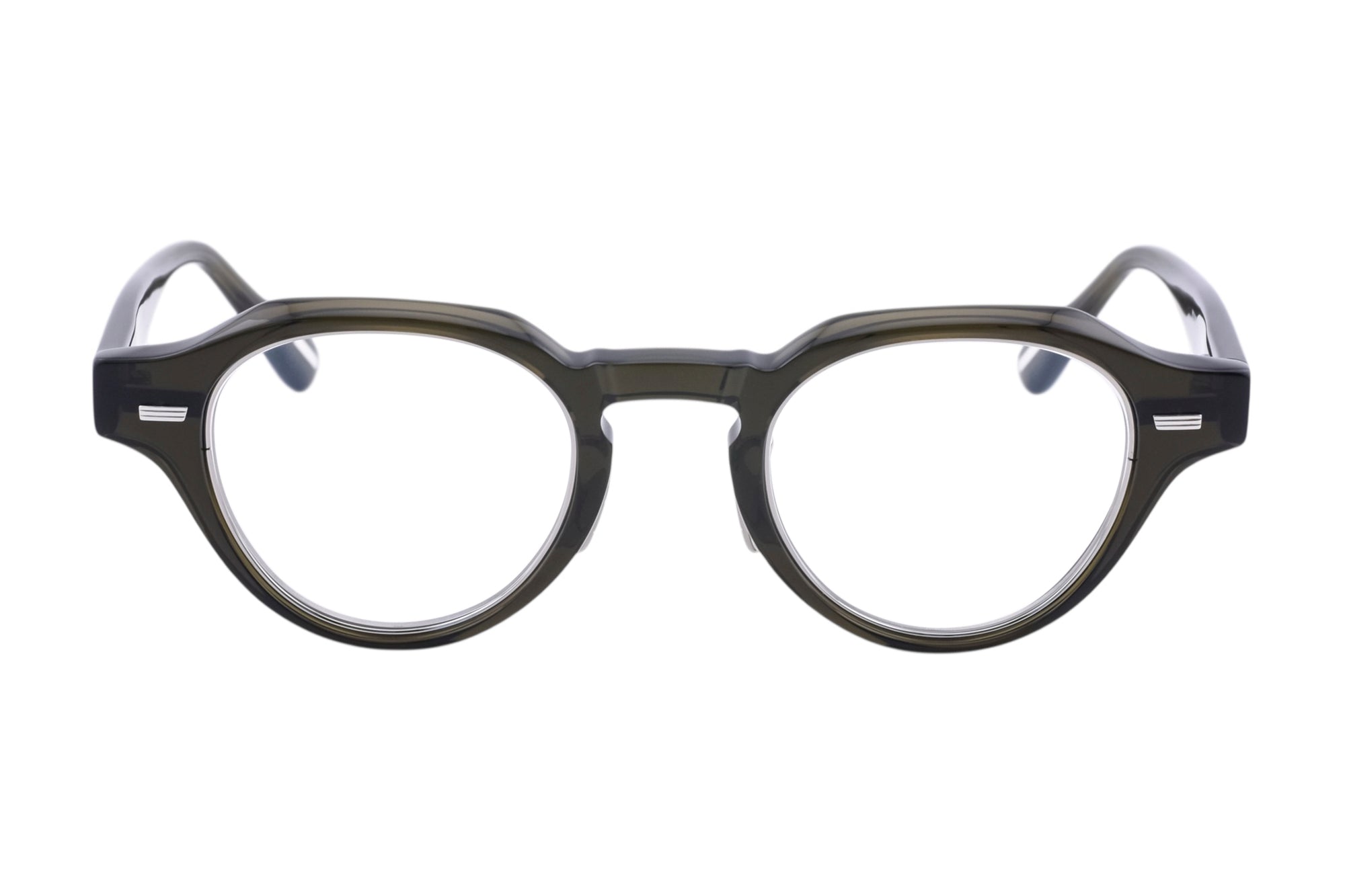 ヨロイにボリュームを持たせたクラインパントフレームは、角を持たせたブロウラインにシャープなカッティングを施し引き締まった印象のデザイン。