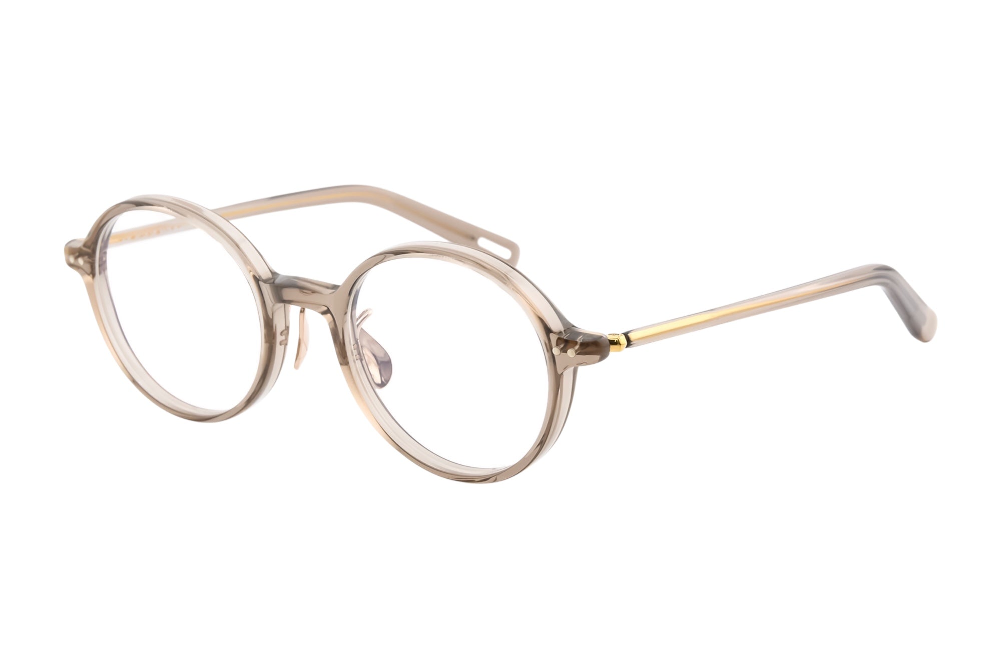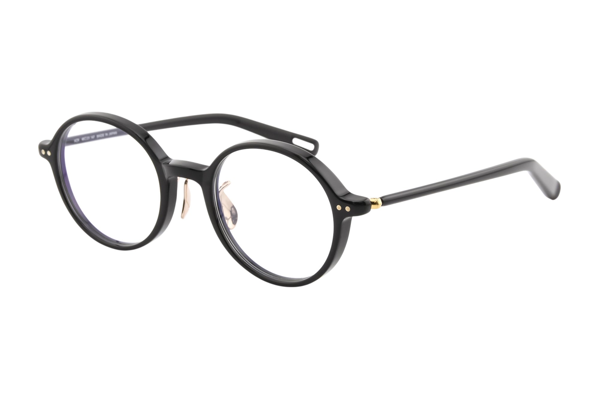 正面を細く奥行きを持たせ適度なボリューム感のあるフロントに、掛け外しが容易な半掛けテンプルを組み合わせました。