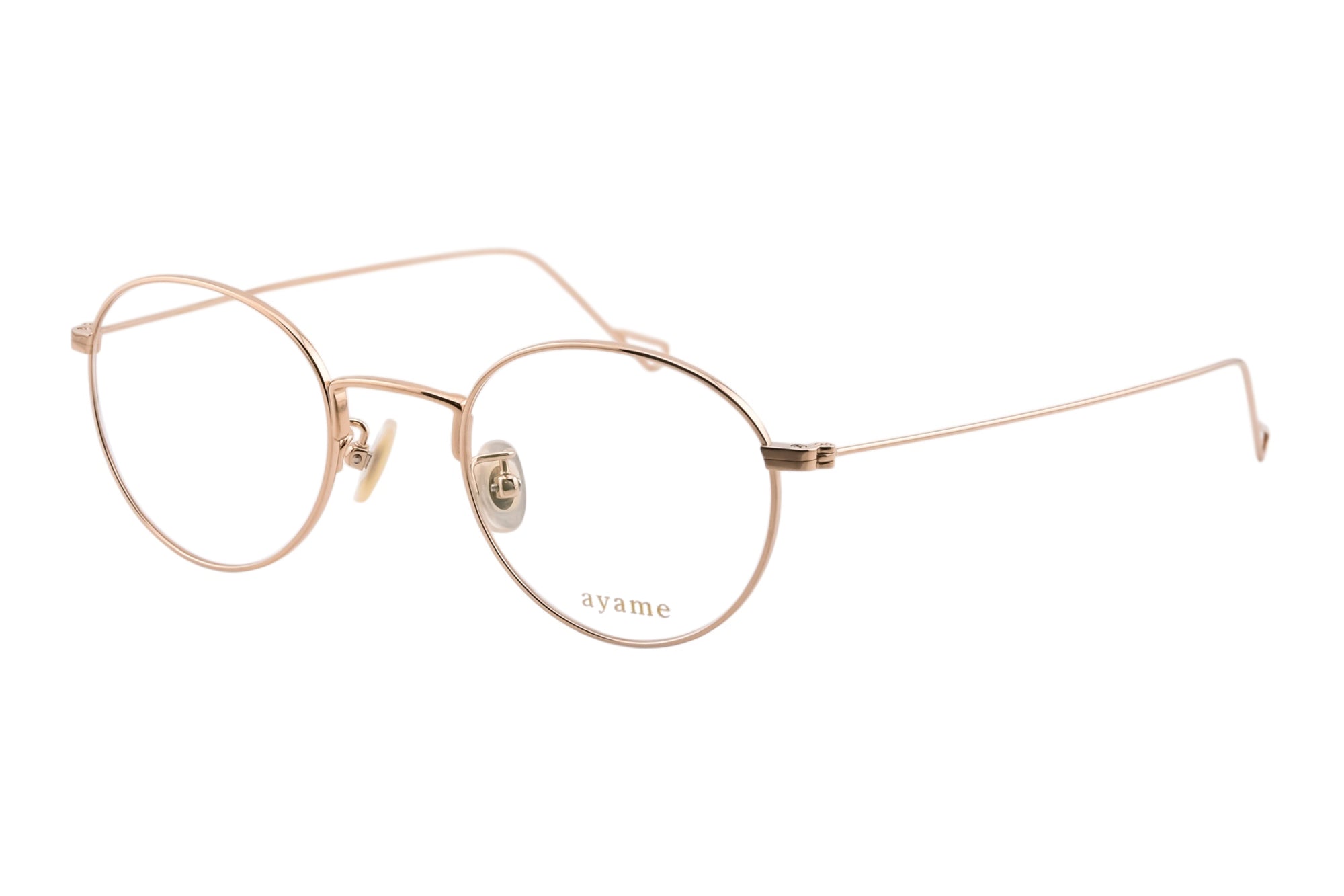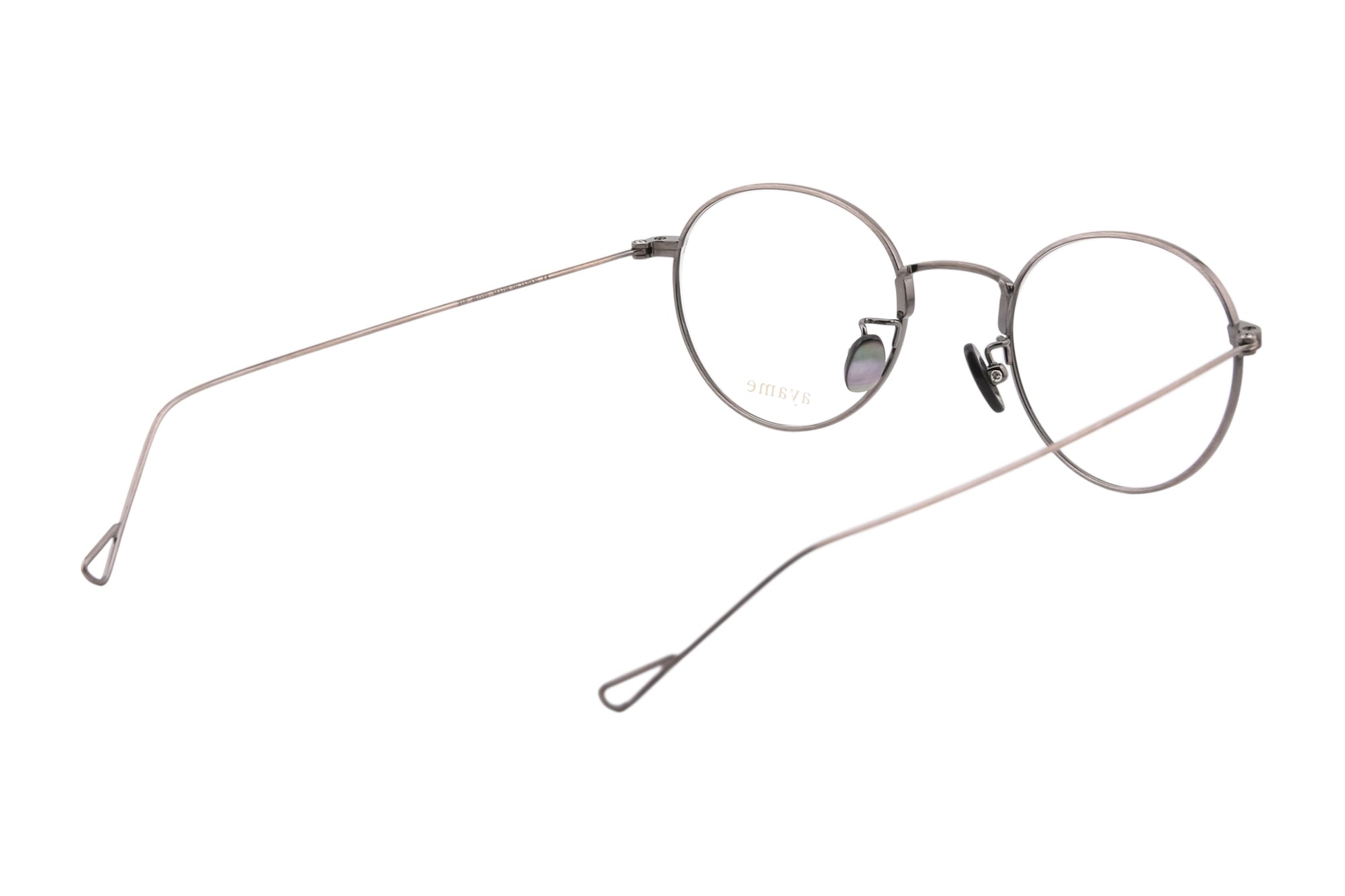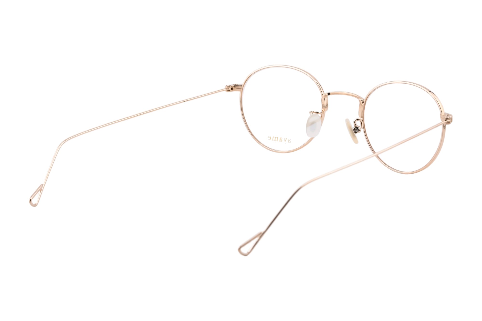 アクセサリーや高級時計の文字盤にも使用されるマザーオブパール(白蝶貝・黒蝶貝)を、鼻パッドに採用したミニマルなボストンシェイプのメタルフレーム。