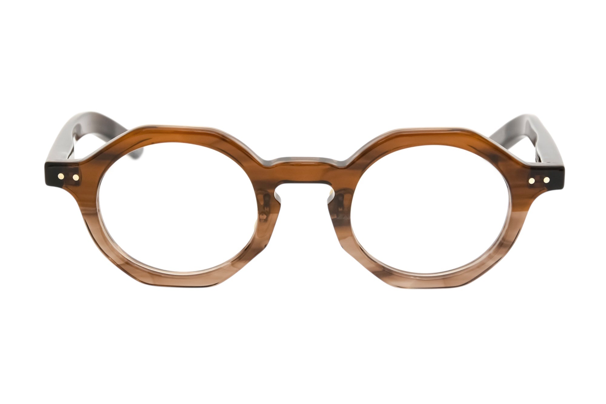 インパクトが強くなりがちなオクタゴンをソフトなエッヂにアレンジすることで遠近の異なる表情を持ち、ゆと りのある縦幅に設定された実験的な小ぶりのオーバルタイプ。斬新なデザインの中に隠されたアンティークのエッセンスは、温故知新のコンセプトを表現する。