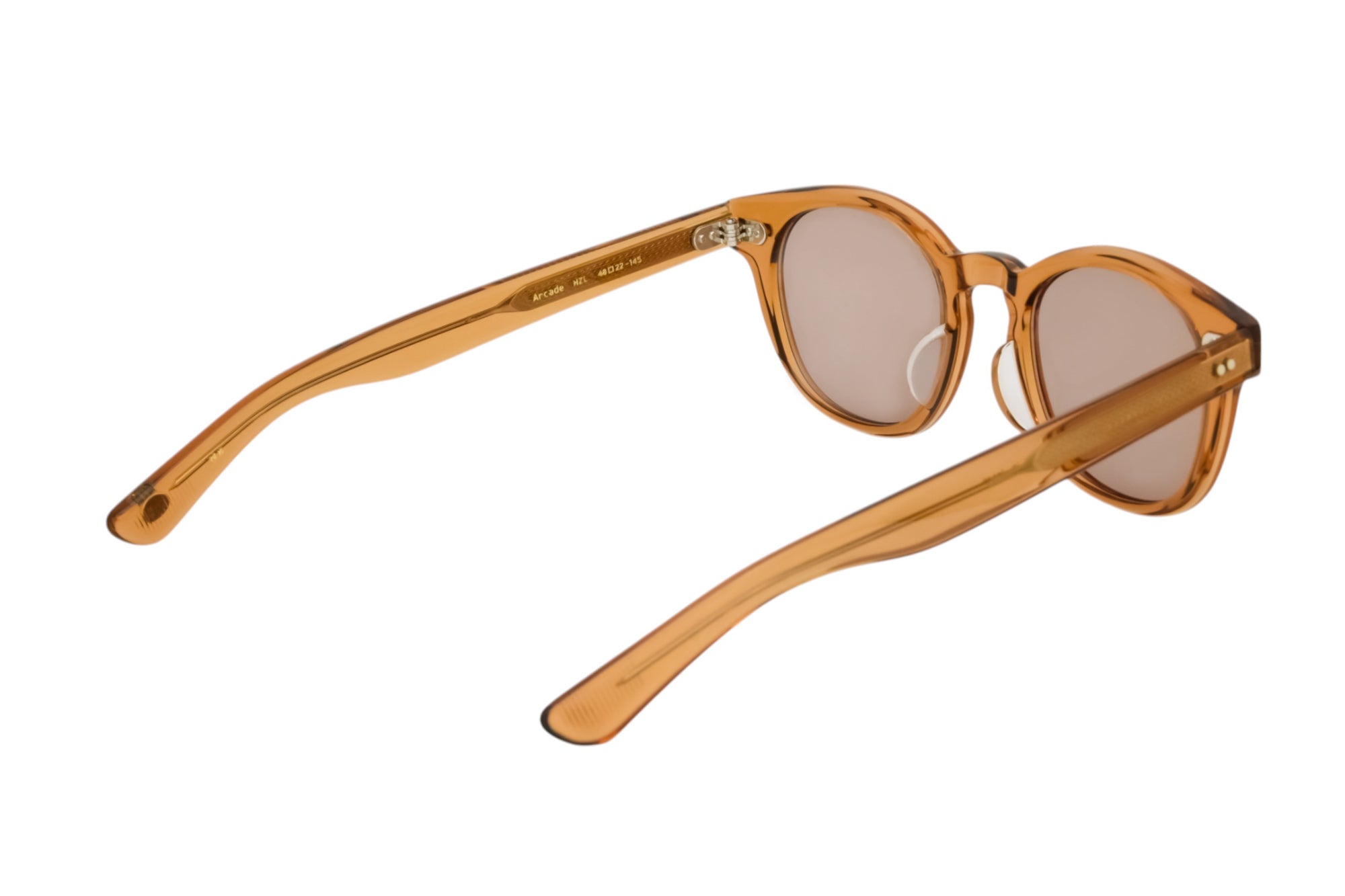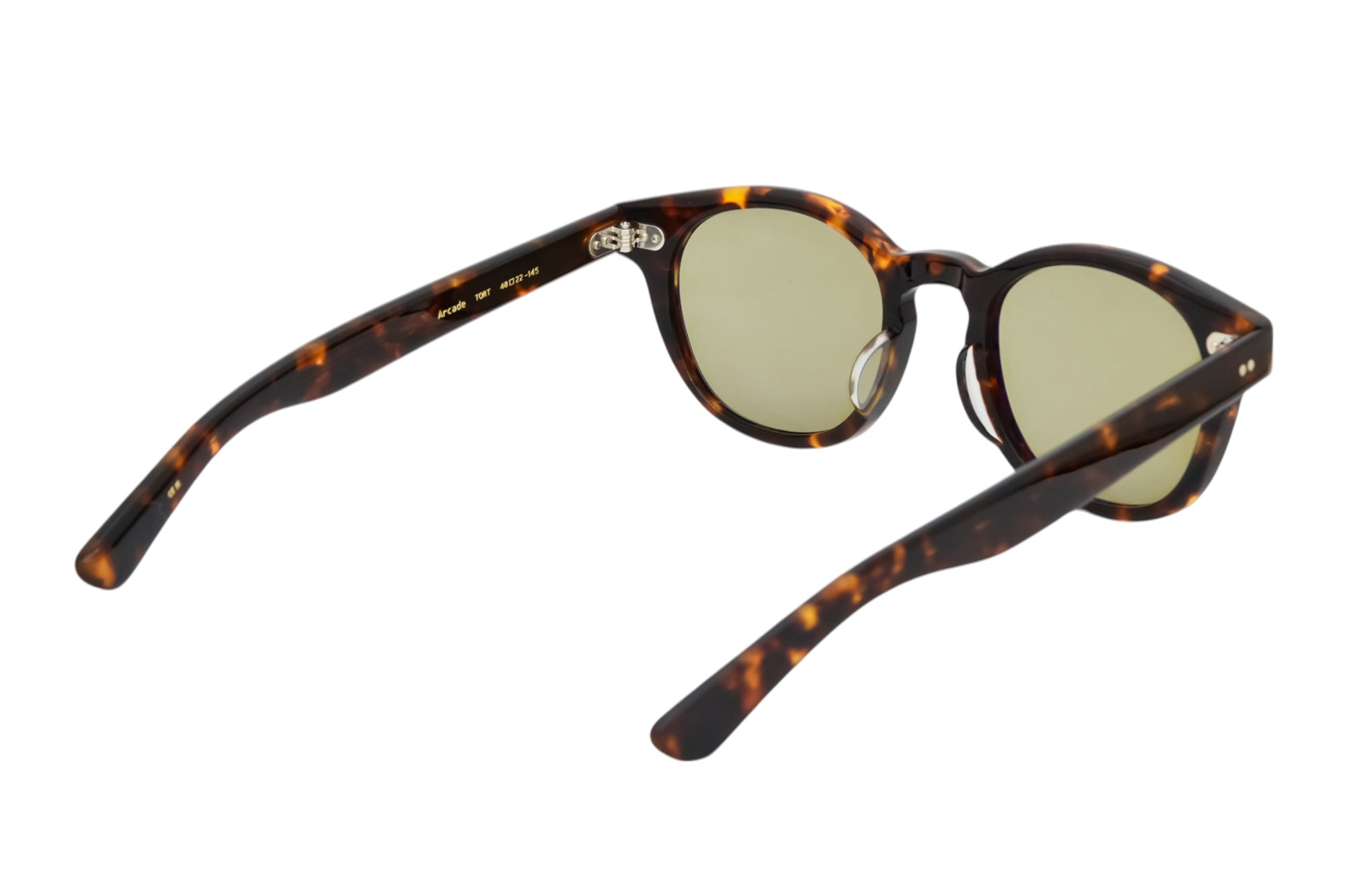 1960年代中期の2つの異なるアメリカンヴィンテージフレームからサンプリングしたモデル。フロントはホーンリムスタイルにアレンジし、丁番はオリジナルの飾りカシメに変更した。サングラスレンズはオリジナルのCR39 4カーブレンズを採用している。