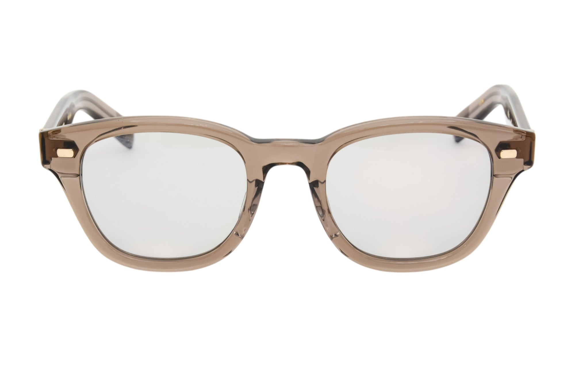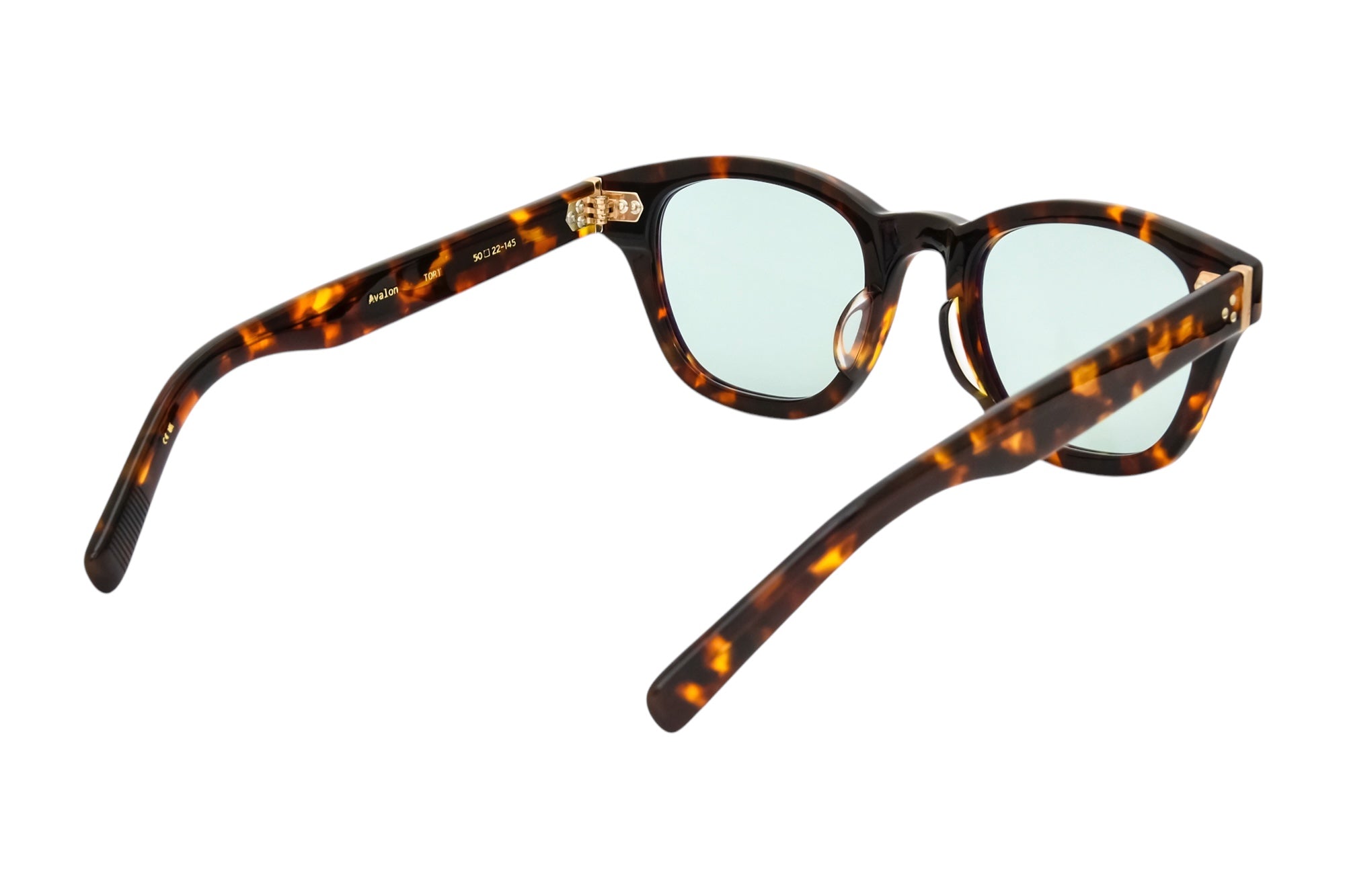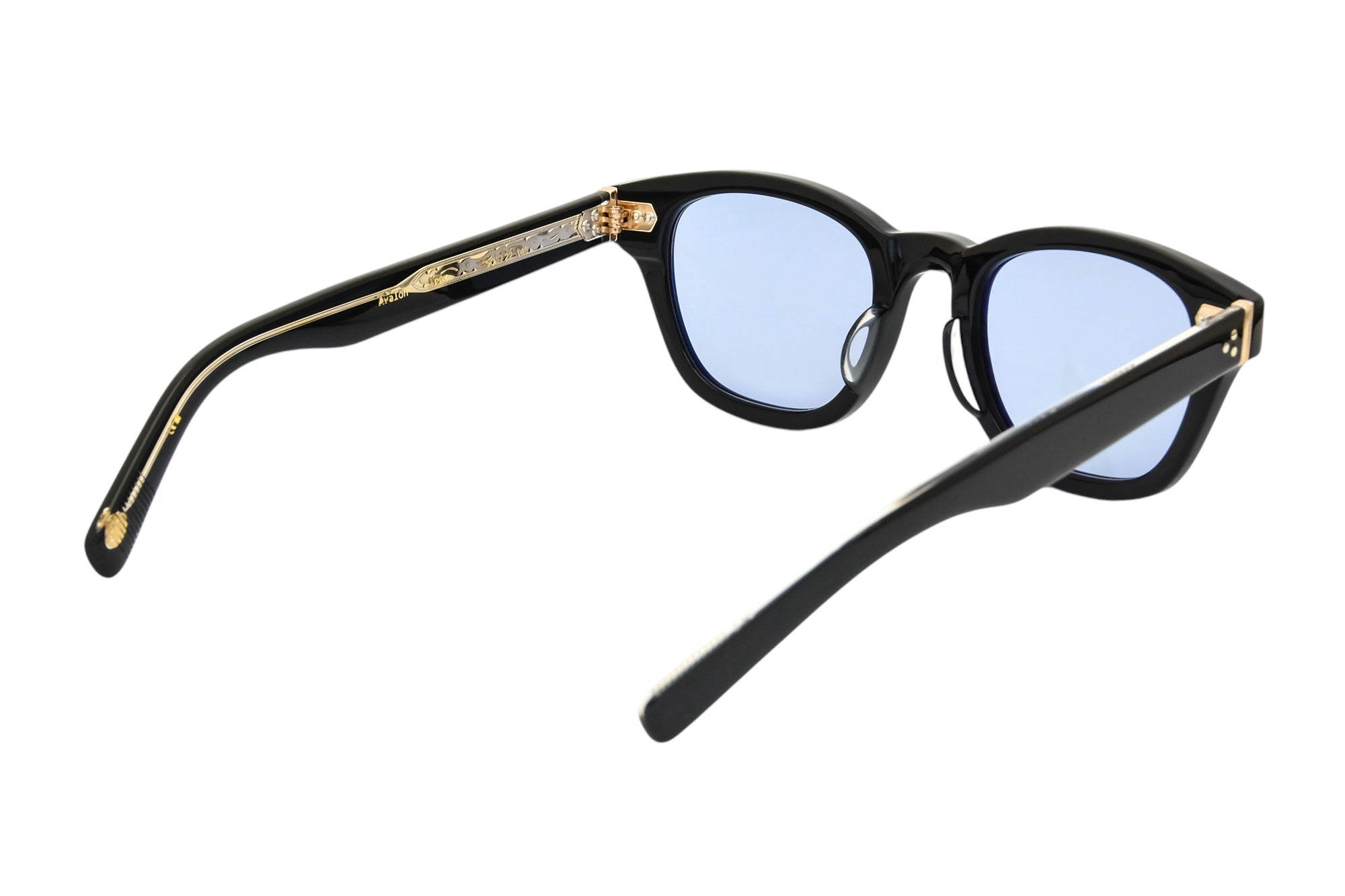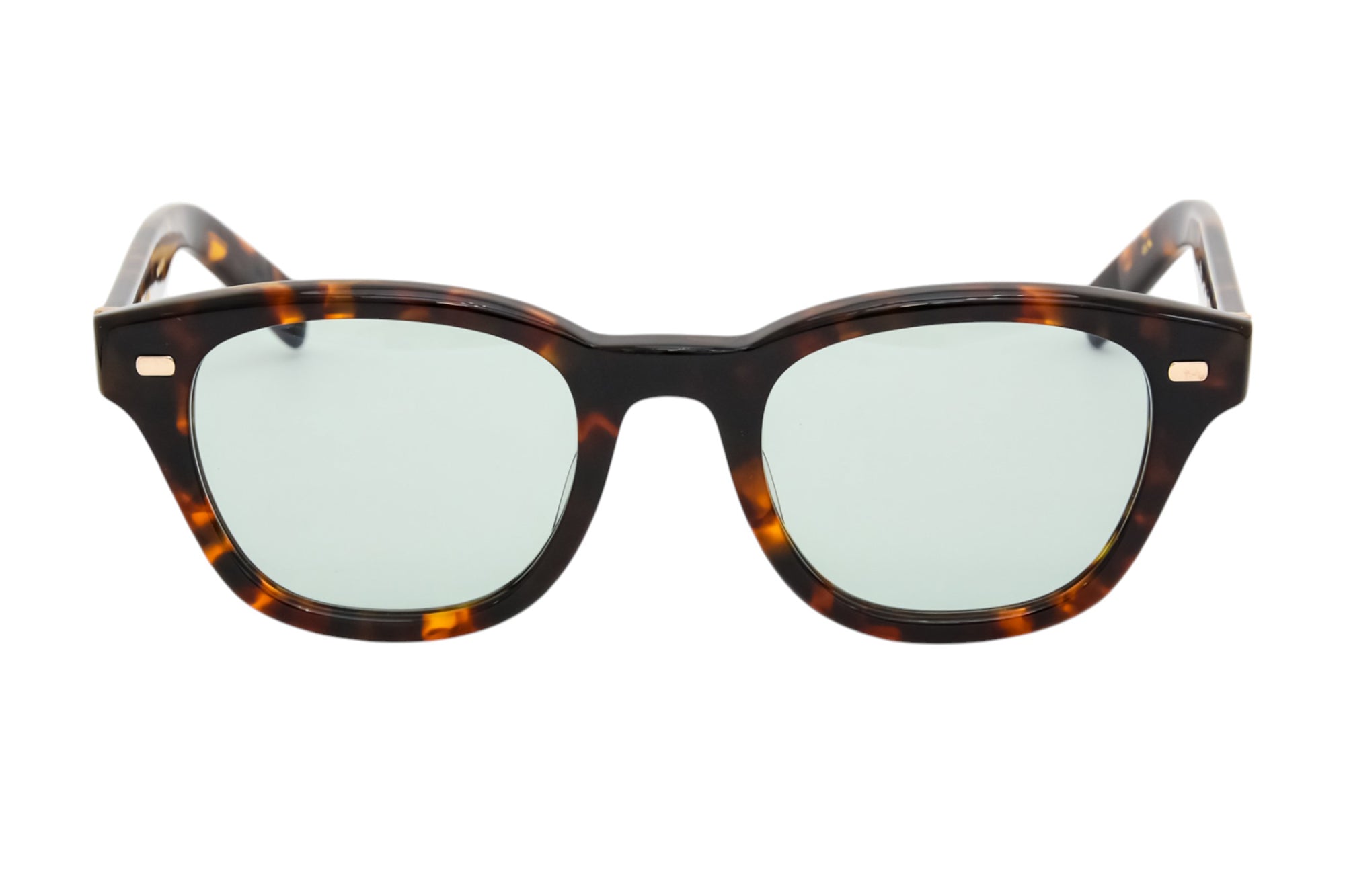 大ぶりのウェリントンシェイプに合口にオリジナルの飾りを配したテンプルを合わせたモデル。
