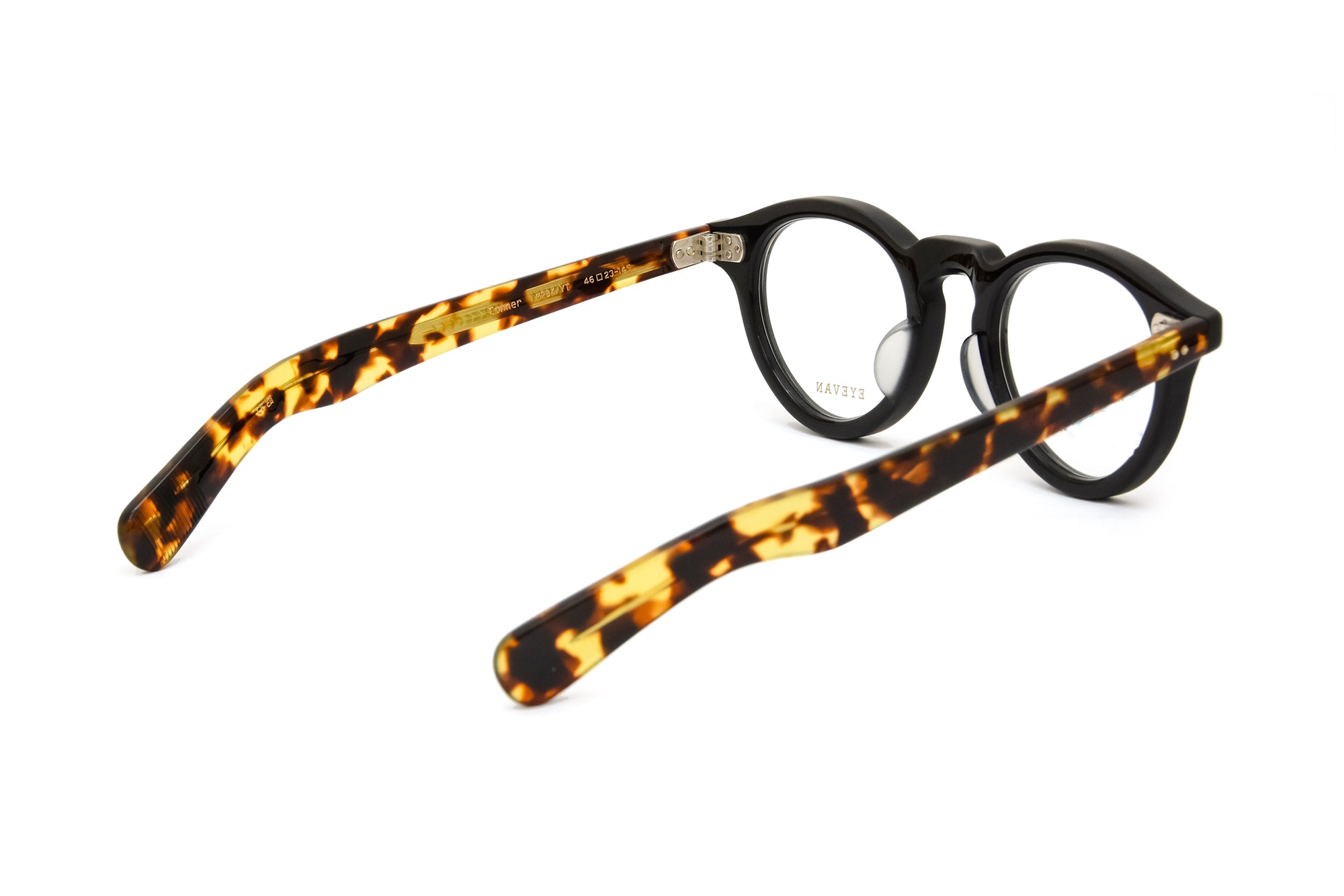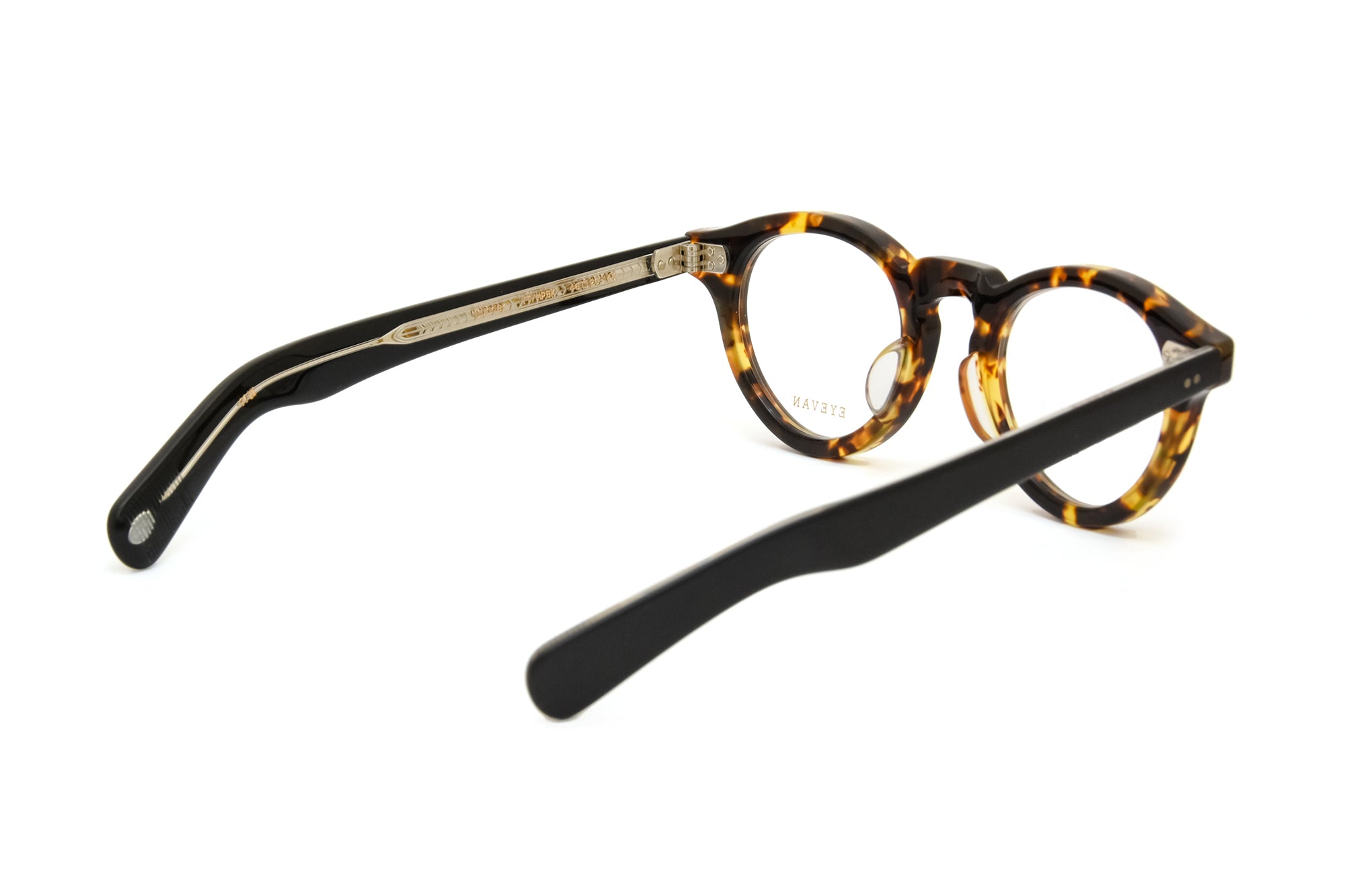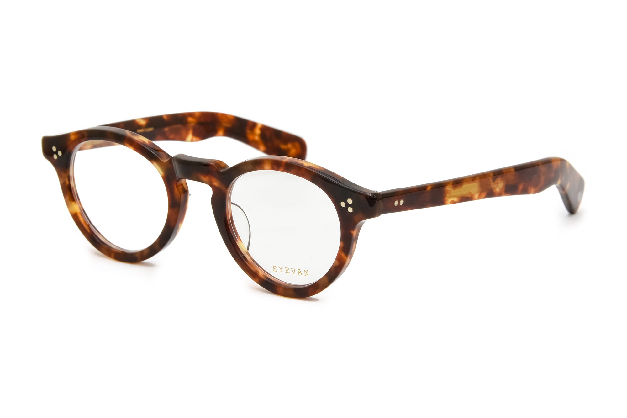 エッヂのある肉厚なフロントと極太なワイドテンプルによって表現した、フレンチヴィンテージシリーズのボストンシェイプのモデル。60年代のフレンチヴィンテージの中でも名作として知られるラウンドパントフレームをベースに徐々に厚みを加えてリデザインしたフロントに、40年代以前のノー芯で作られたヴィンテージフレームの独特な雰囲気を持つテンプルデザインをあわせた。