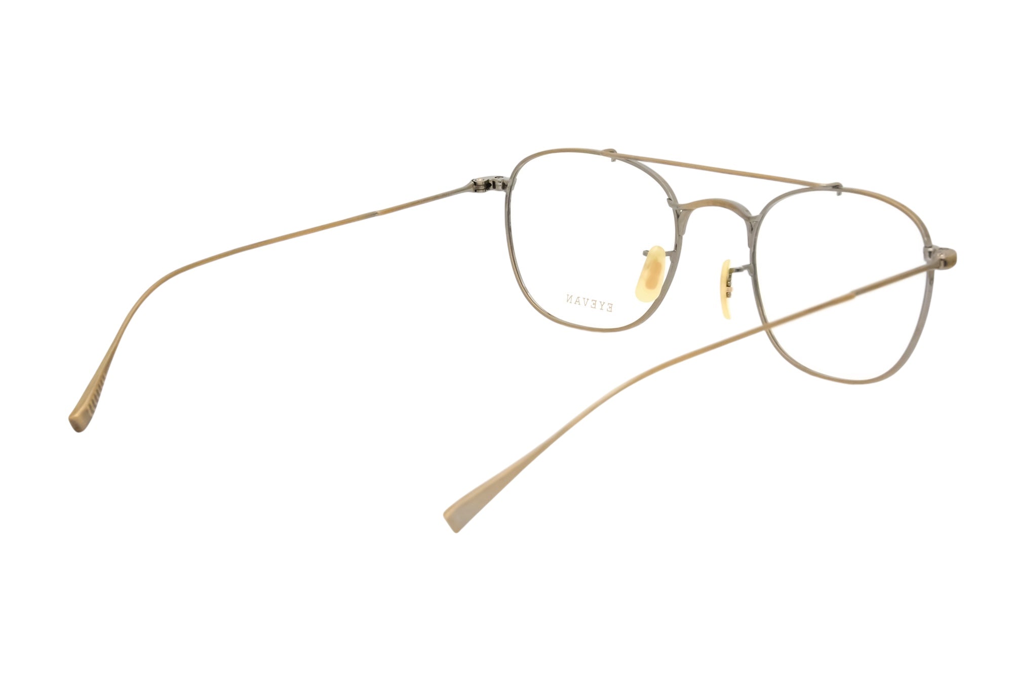 フロントを前後から補強する形状のWブリッジは30年代のアメリカンヴィンテージからインスパイアされたデザイン。レンズシェイプにはEYEVANが今一番美しいと考える究極のウェリントンシェイプを合わせ、過去から現在まで脈々とつづくEYEVANデザインチームのアイデアを1つの形に完成させたモデルとなっている。