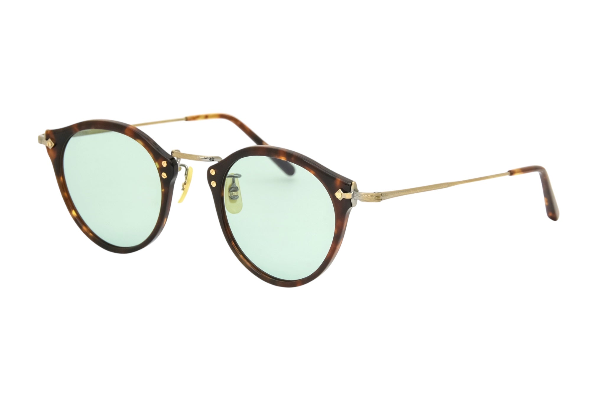 ブリッジ、ヨロイ(フロント両端とヒンジとの接合部)、テンプルなどの金属パーツは、元のデザインに忠実に型から作り直し、軽さと強度に優れるチタン製にアップグレードされている。