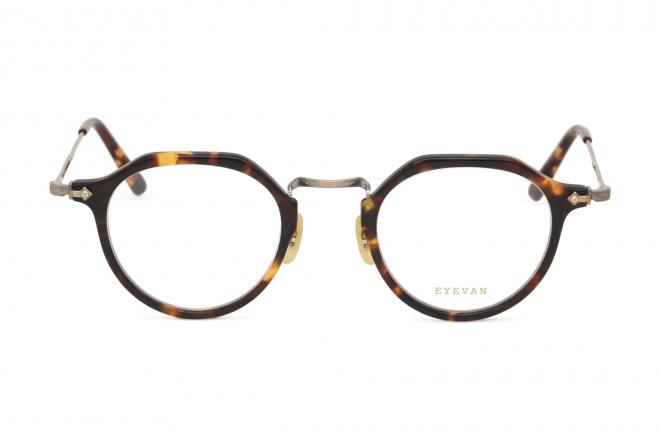 EYEVAN のアイコンとなったE- 500番台シリーズの E- 0510につづくコンビネーションフレーム。 シリーズでは初となるクラウンパント(王冠型)シェイプのモデル。
