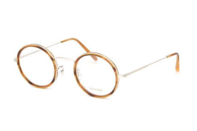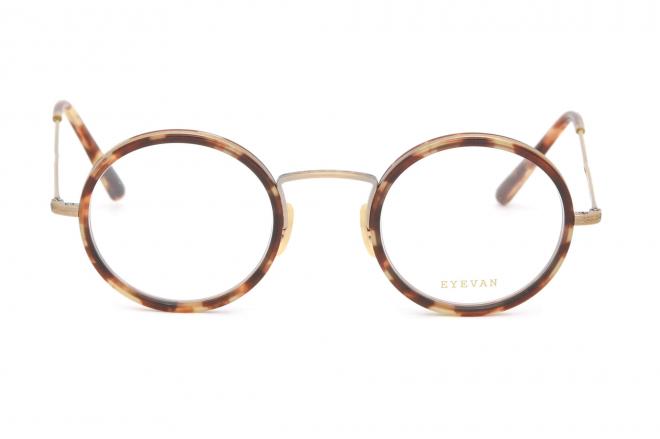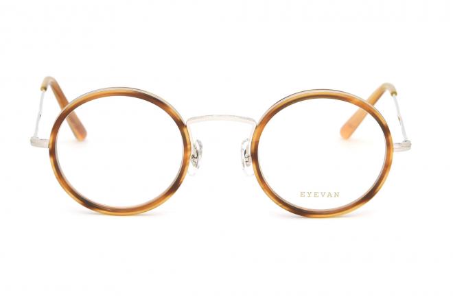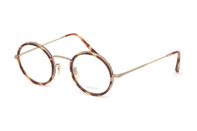 アイコン的モデルE-500番台シリーズ「E-0509」に続くソフト枠のコンビネーションフレーム。フロントデザインは、1968年にジョン レノンがかけていたメタルラウンドフレームが着想源。その特徴的なブリッジは、偶然にも同じデザインで80年代に発表された「OF-10」のブリッジを今回新たに型から復刻し合わせている。