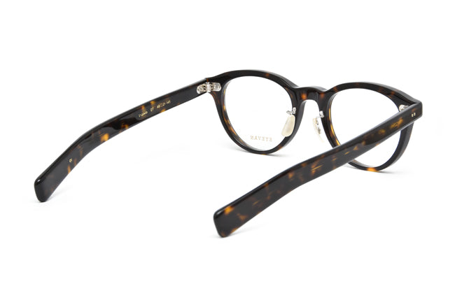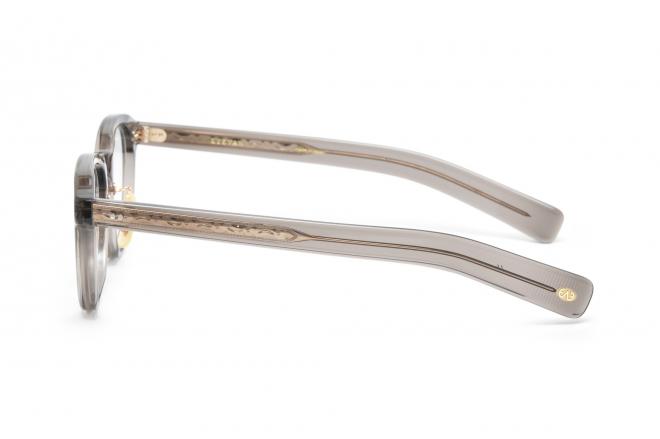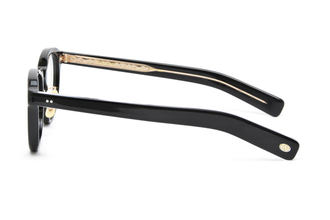 6ミリ厚のアセテート生地を使ったリムのフロントに、ヨーロピアンヴィンテージをベースにしたデザインのテンプルを合わせたモデル。
