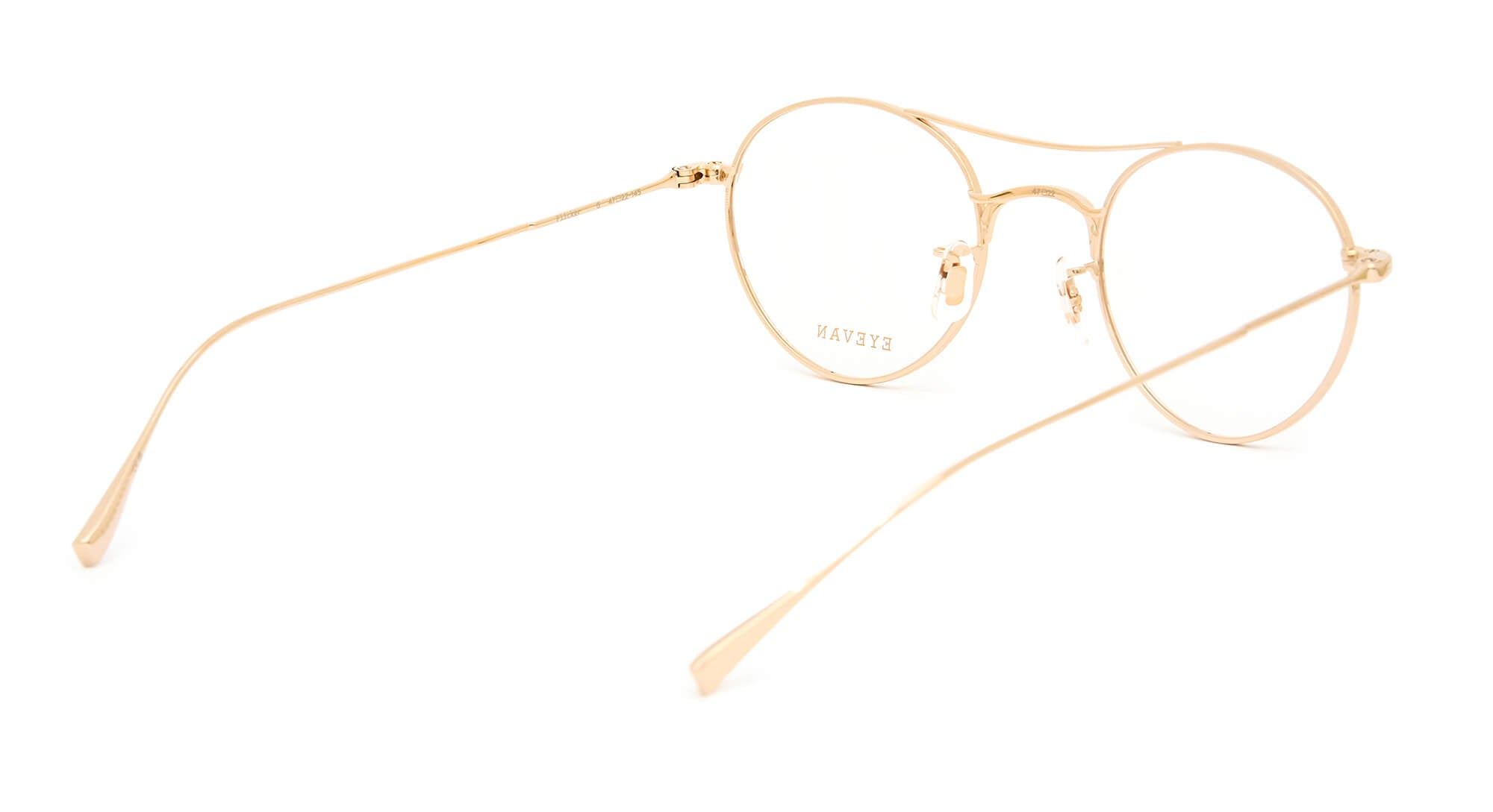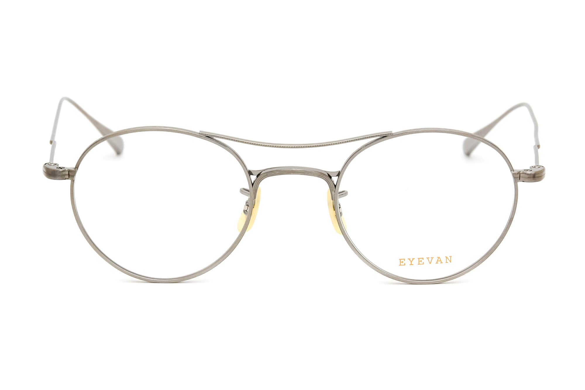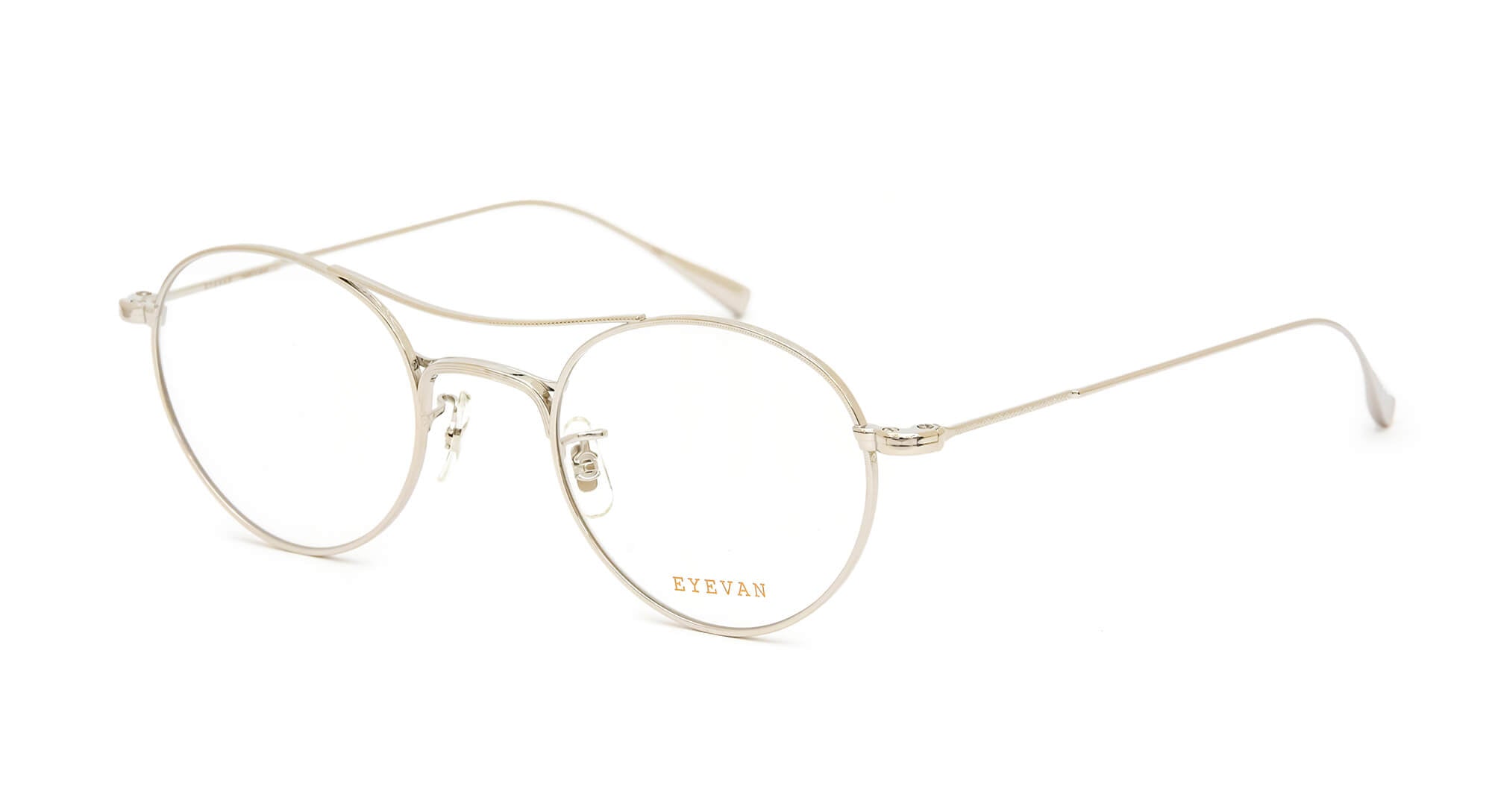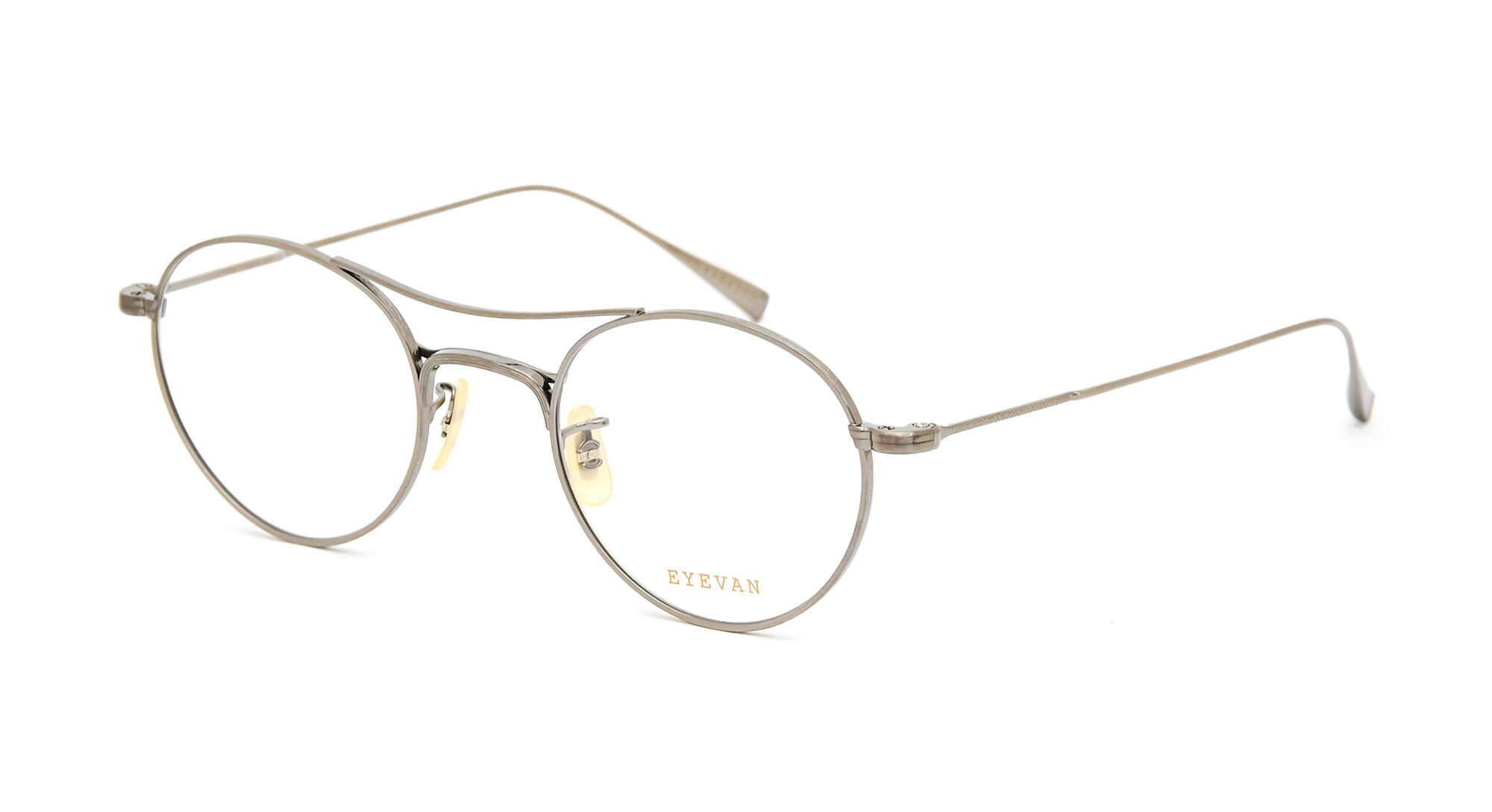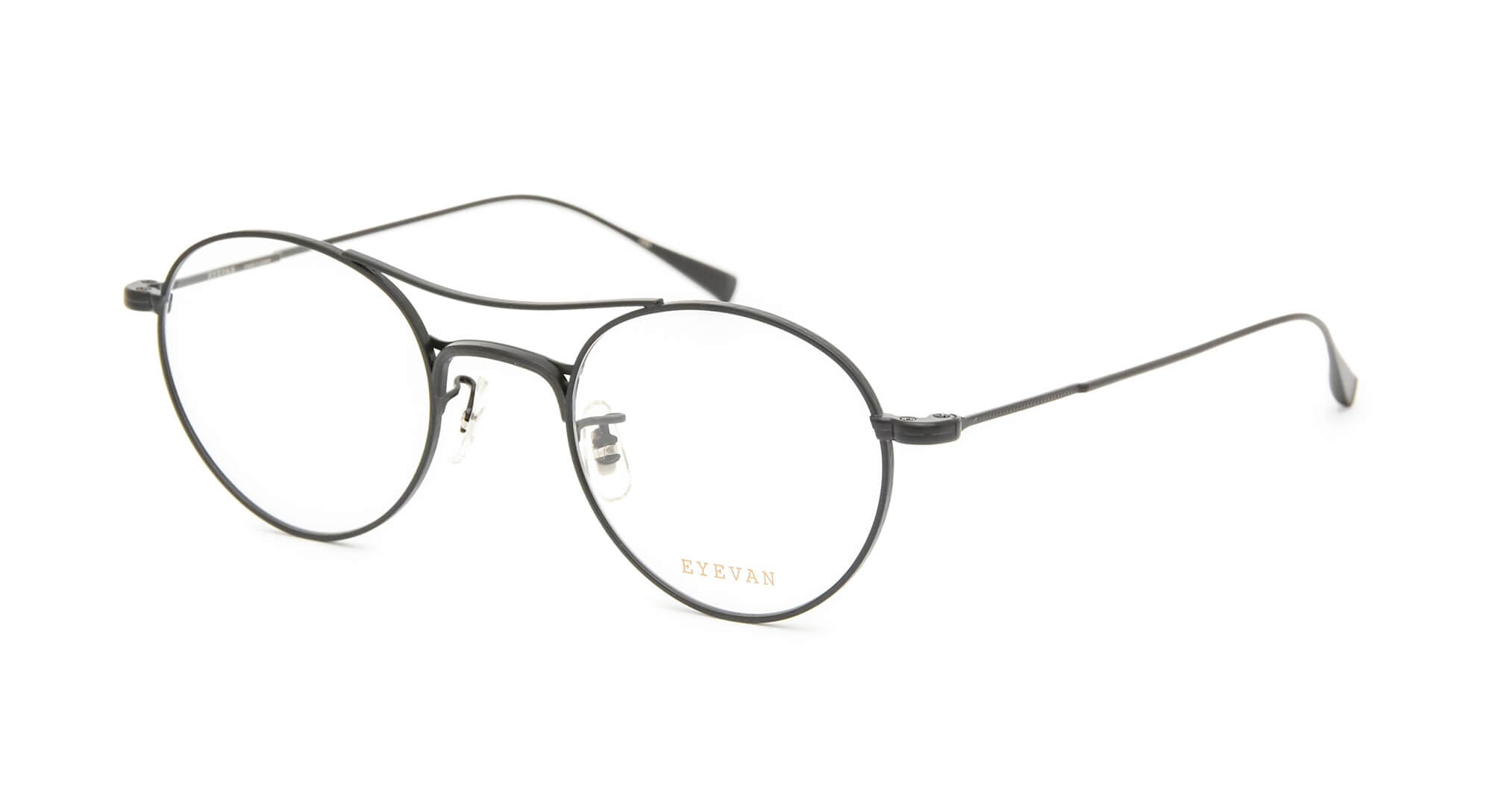 フロントを前後から補強する形状のWブリッジは30年代のアメリカンヴィンテージからインスパイアされたデザイン。レンズシェイプにはEYEVANが今一番美しいと考える究極のパントシェイプを合わせ、過去から現在まで脈々とつづくEYEVANデザインチームのアイデアを1つの形に完成させたモデルとなっている。