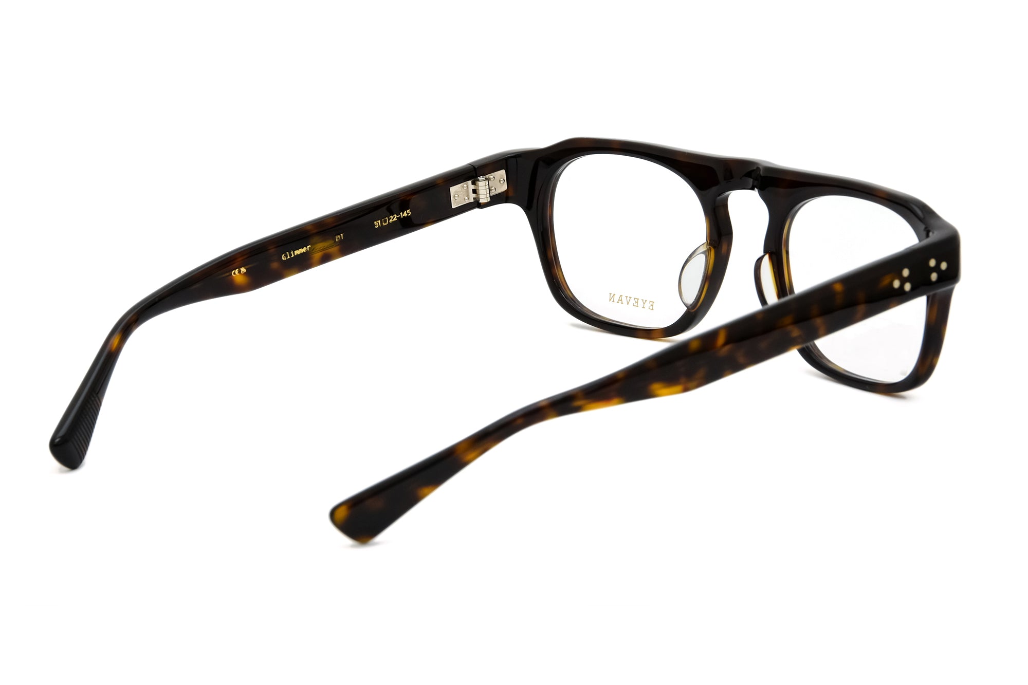 40年代初期のアッパーブリッジスタイルに、50年代ヴィンテージのディテールを絶妙なバランスでミックスした80年代のアメリカンヴィンテージがデザインソースのワイドスクエアシェイプのモデル。特徴的な3PIN×3PINのカシメは最も難易度が高く、鯖江の数少ない熟練の職人によって実現されている。