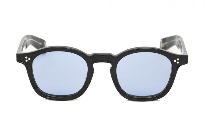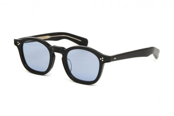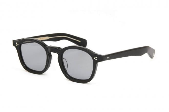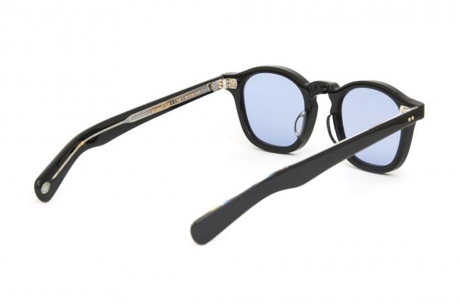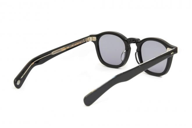 フレンチヴィンテージシリーズ・2023AWモデルのGoodmanのフロントに油圧プレスによるアウトラインを残したカットを入れ、現代的に再構築したサングラス。50年代に作られた細めのラインのフレンチウェリントンをベースに徐々に厚みを加えてデザインしたフロントに、40年代以前のノー芯で作られたヴィンテージフレームの独特な雰囲気を持つテンプルデザインをあわせた意匠。
