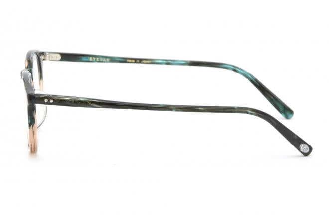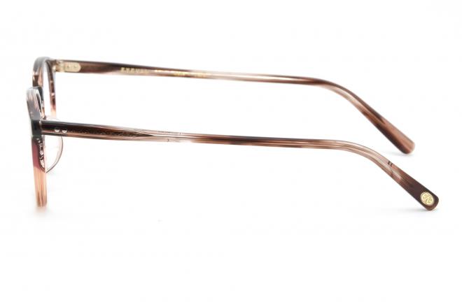 4mmの生地を使い、リムを極限まで細くしたミニマルなフロントがアイヴァンらしい、ボストンとラウンドを掛け合わせたシェイプのモデル。