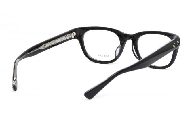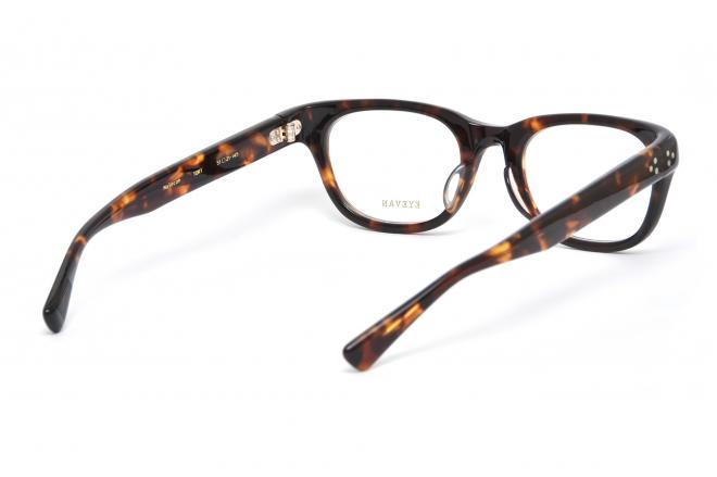6ミリの生地を油圧プレスにより8ミリまで厚みを持たせながら曲智にするという高度な技術でつくられたプラスチックフレーム。丁番にはフロント、テンプルともに3ピンカシメを採用。