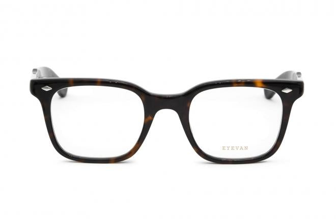 1960年代のアイウェアカタログに掲載されていた、アメリカンヴィンテージのフロントデザインが着想源となったモデル。EYEVANが80年代に発表したモデル「E-31」に唯一使われたテンプルデザインを40数年ぶりに再現。ジャーマンデザインを彷彿させる特徴的なデザイン。