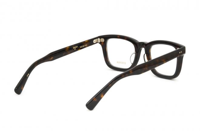 ニューヨークで創業した老舗メーカー「SRO」が50年代に製造したヴィンテージフレームが着想源のモデル。スクエアとウェリントンを掛け合わせレンズたシェイプ。