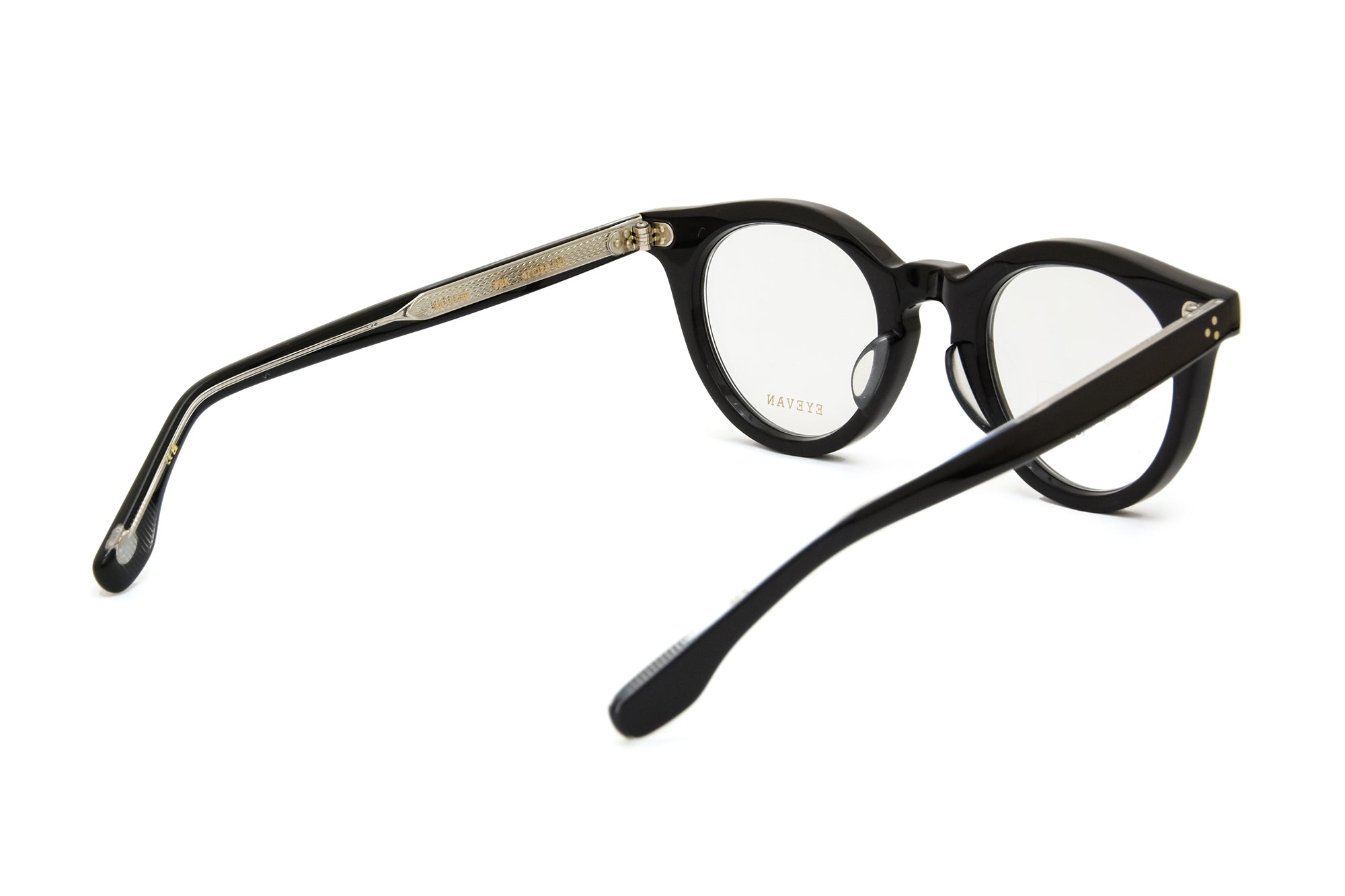 2000年代のアーカイブを着想源に、ポストンシェイプとミドルブリッジのオーバルシェイプをミックスしたフロントデザインが特徴的なモデル。この一見アンバランスなフロントに、1960年代のフレンチヴィンテージからサンプリングしたユニークなしのみ形状のテンプルを合わせ新しいデザインヘ再構築した。