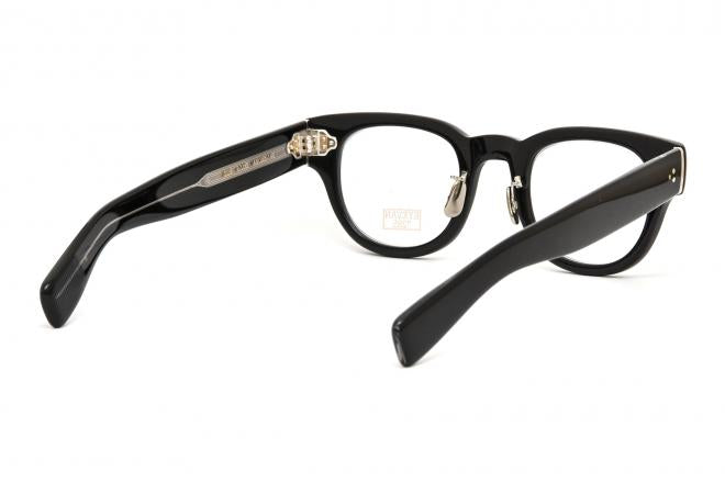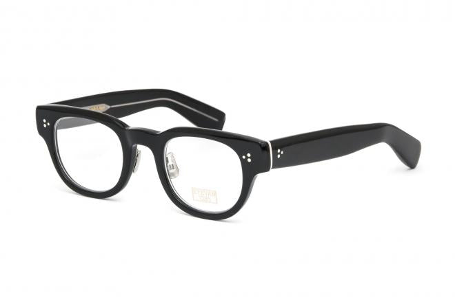 '50年代をイメージしたボリュームのある正面見に対し、生地の厚みは5mmに抑えバランスを整えたモデル。手描きで仕上げたファーストデザインのラフで味のあるイメージをあえて残したクラシカルでオリジナリティのあるレンズシェイプが特徴的。