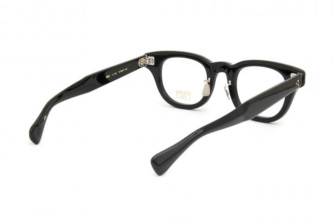 フロントとテンプルが面一でない、智(フロントとテンプルを繋ぐパーツ)に対してテンプルが内側に入る「オフセット」タイプのセルフレーム。