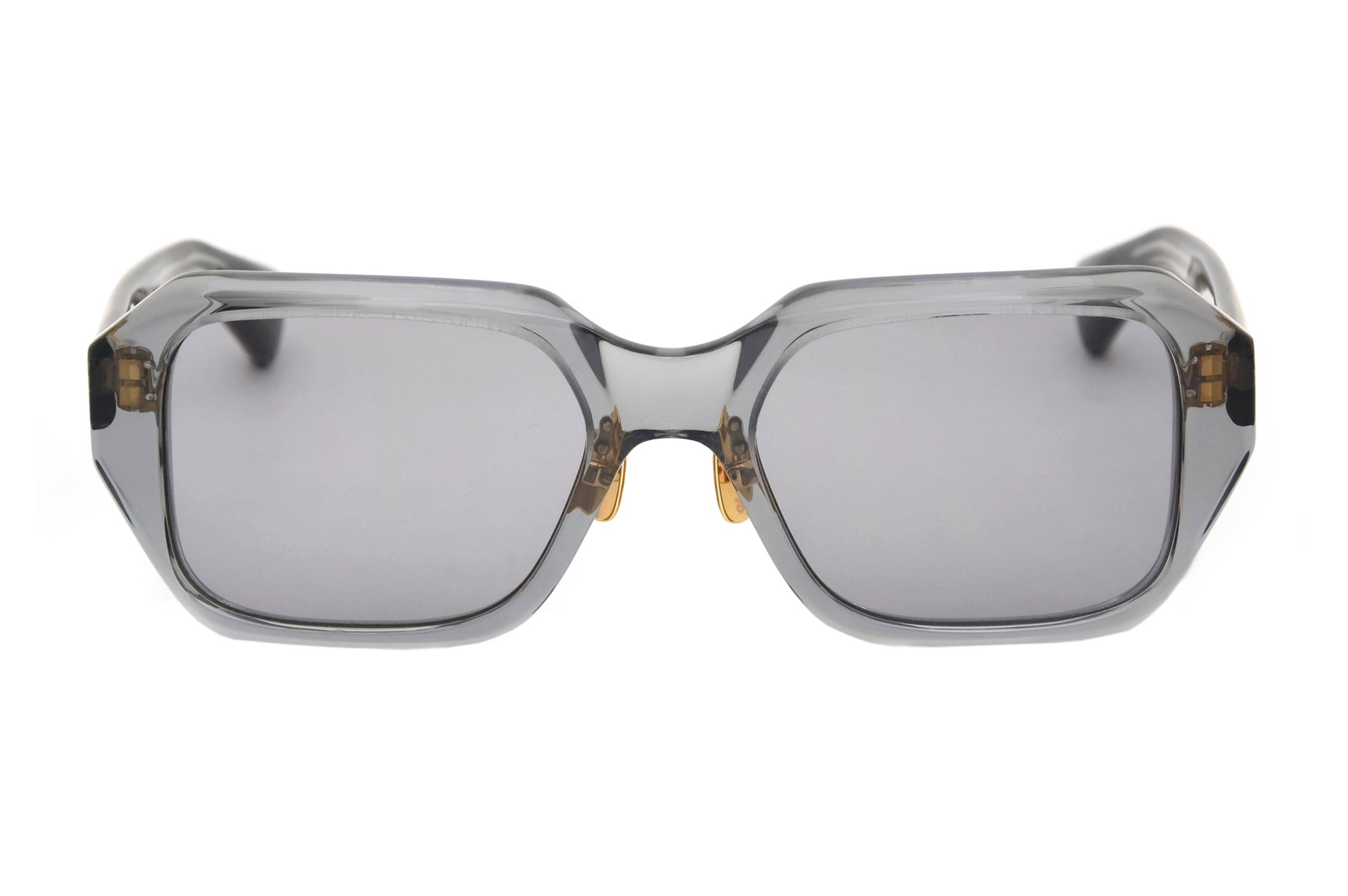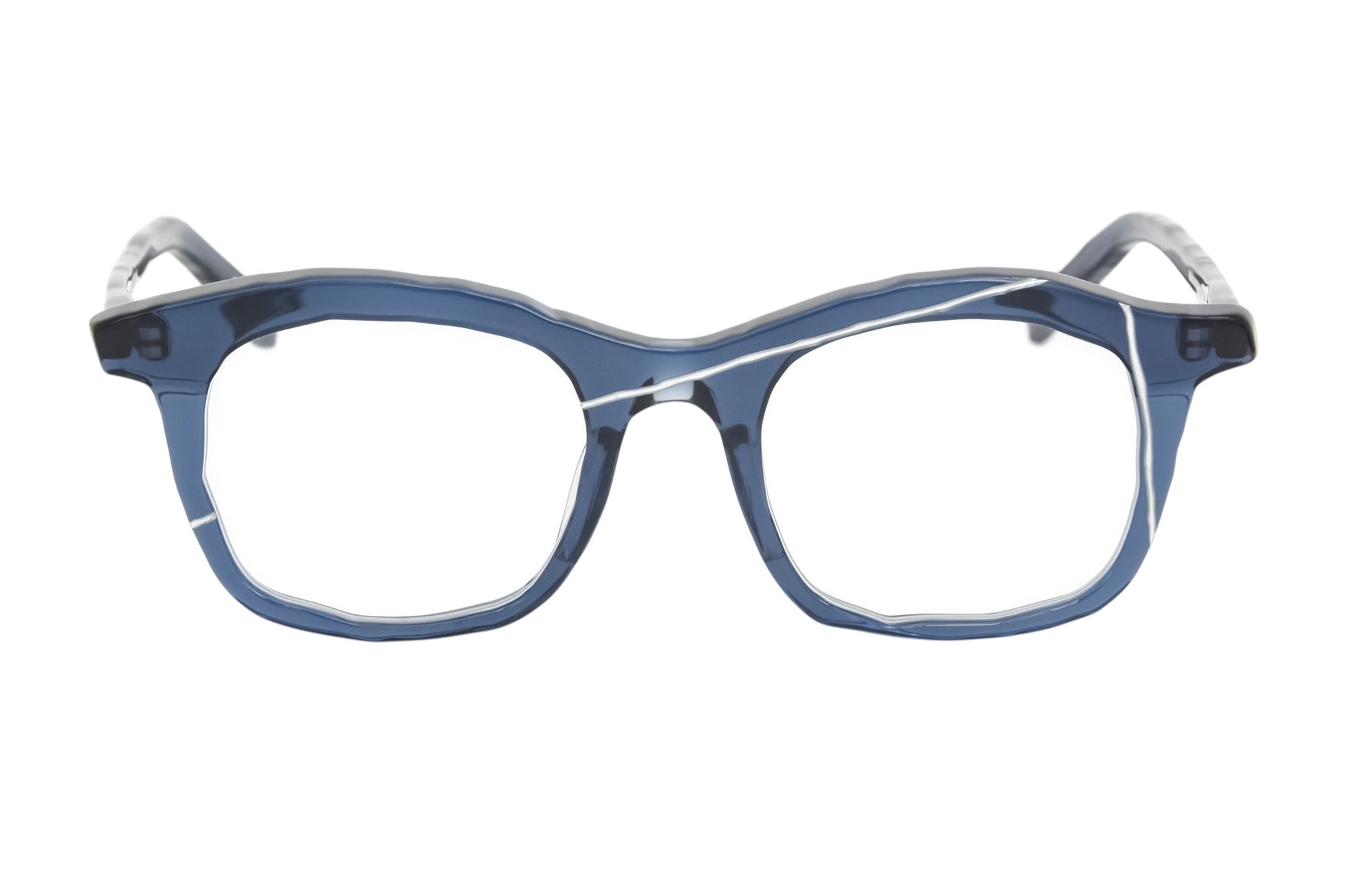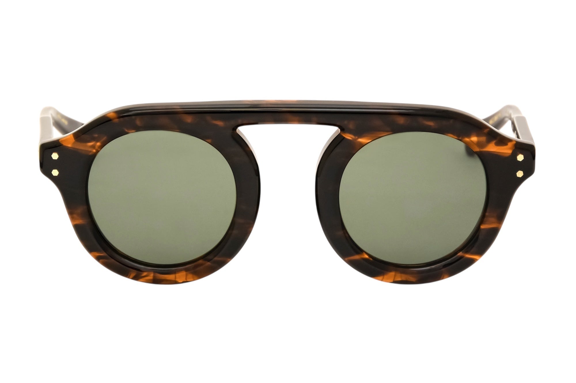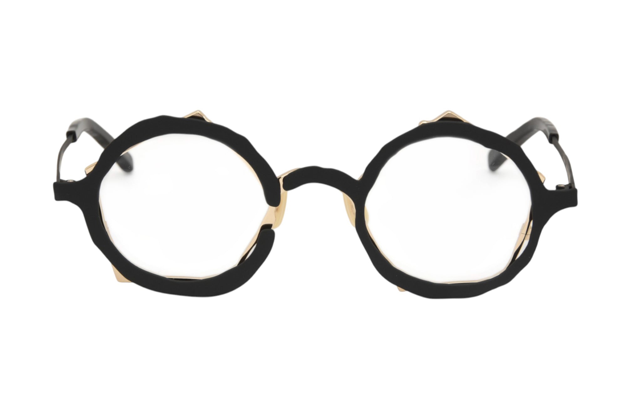 厚めの生地感や天地幅のあるブリッジなどが創出する無骨なイメージとK10の1PINや精緻な設計の埋め込みカシメ丁番が持つ繊細なイメージが同居した形容しがたいユニークな存在感のモデル。