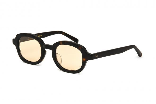 フレームフロント上部は厚みをもたせて丸みを減らした一方、下部では緩やかなカーブを採用したスクエアとオーバルを掛け合わせたシェイプのモデル。