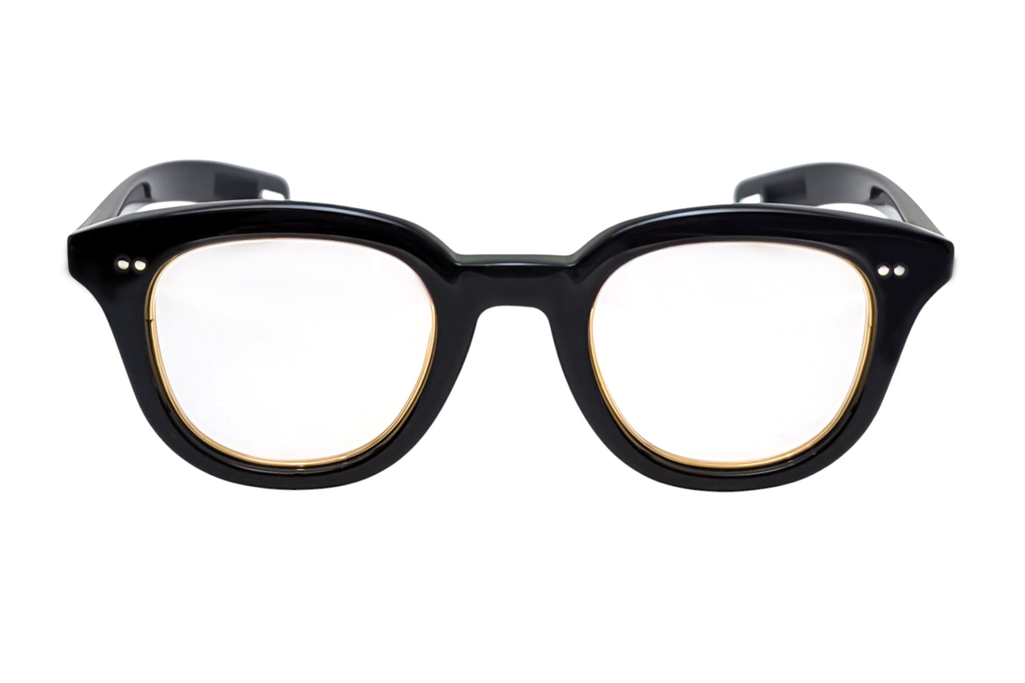 ボリューム感の中に丸みのある質感が際立ち、柔らかさが漂うウェリントンシェイプのモデル。フロントリムと掛け外しの容易な半掛けテンプルに” つままれた” ような細いヨロイと合口は独自のアンバランス感で YUICHI TOYAMA. のニュービンテージを提案している。