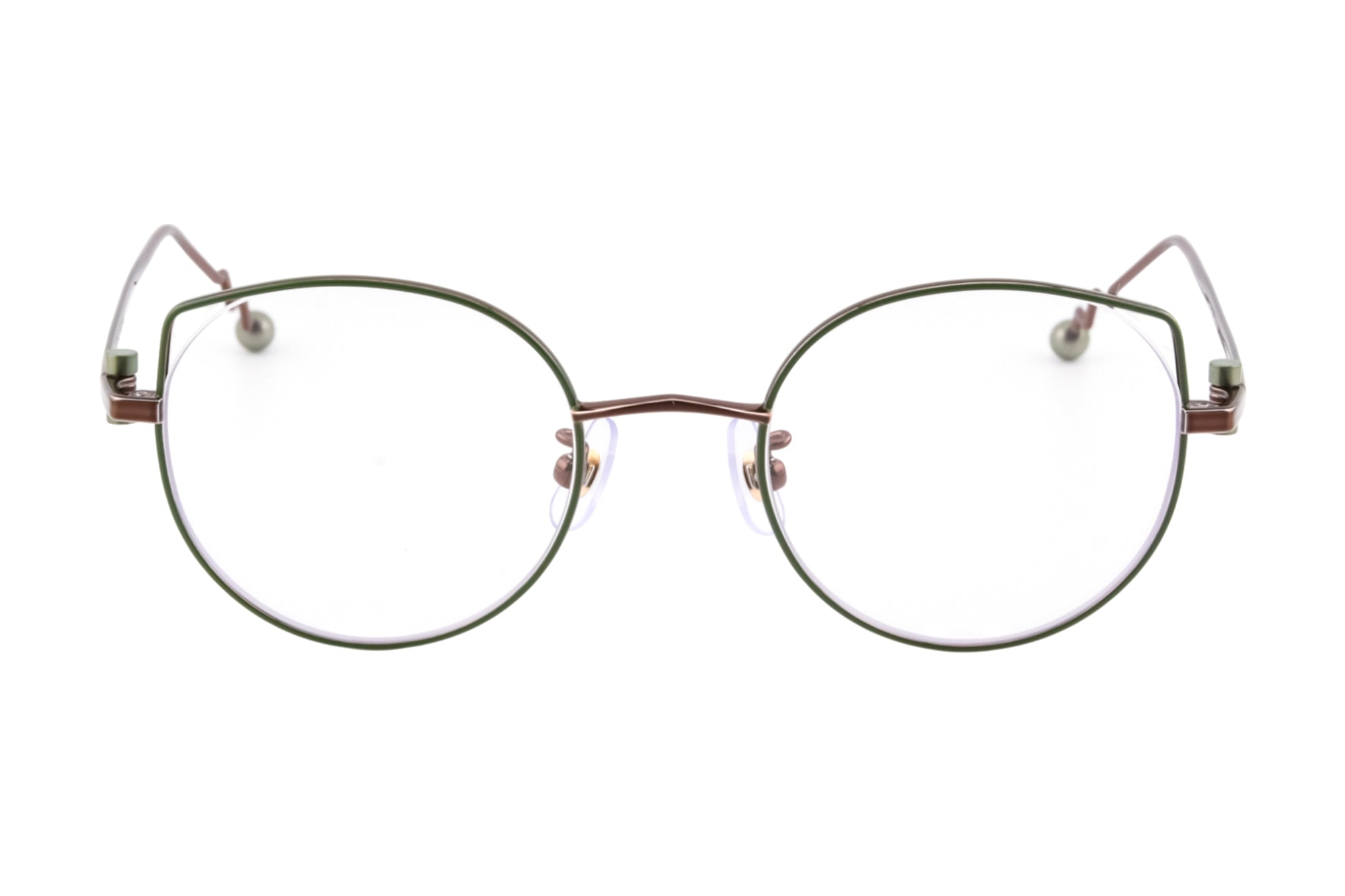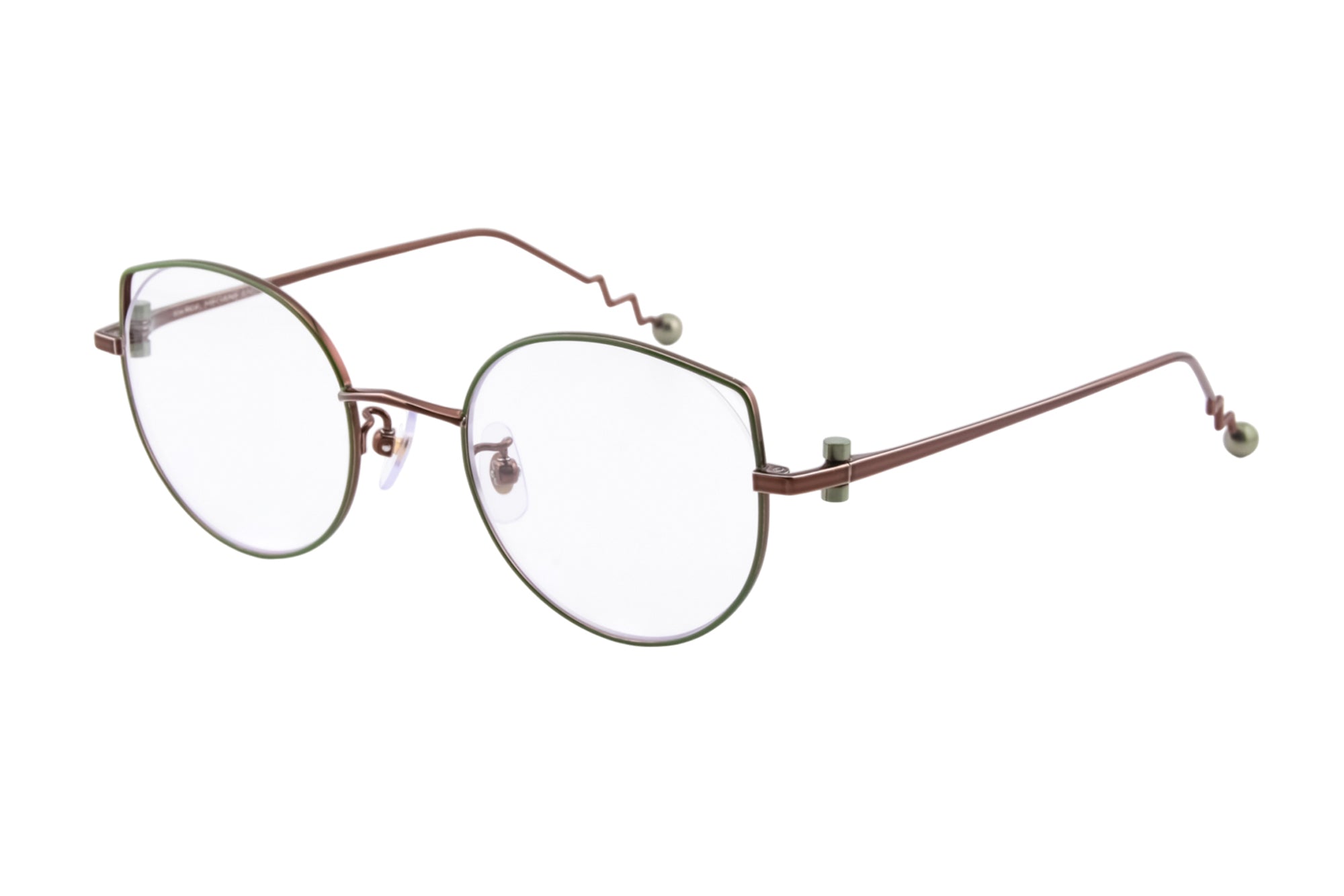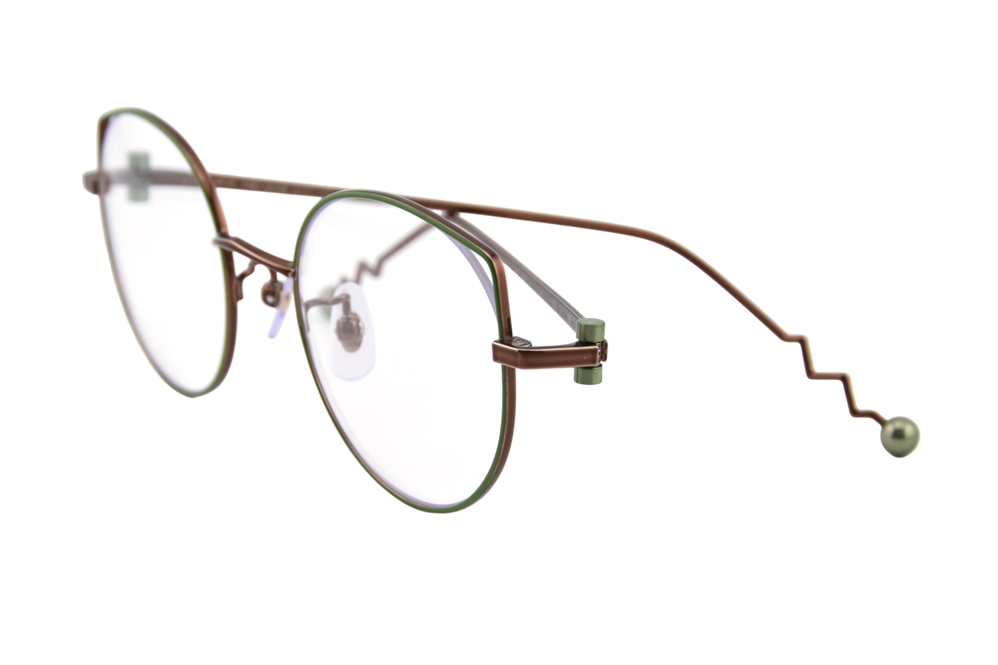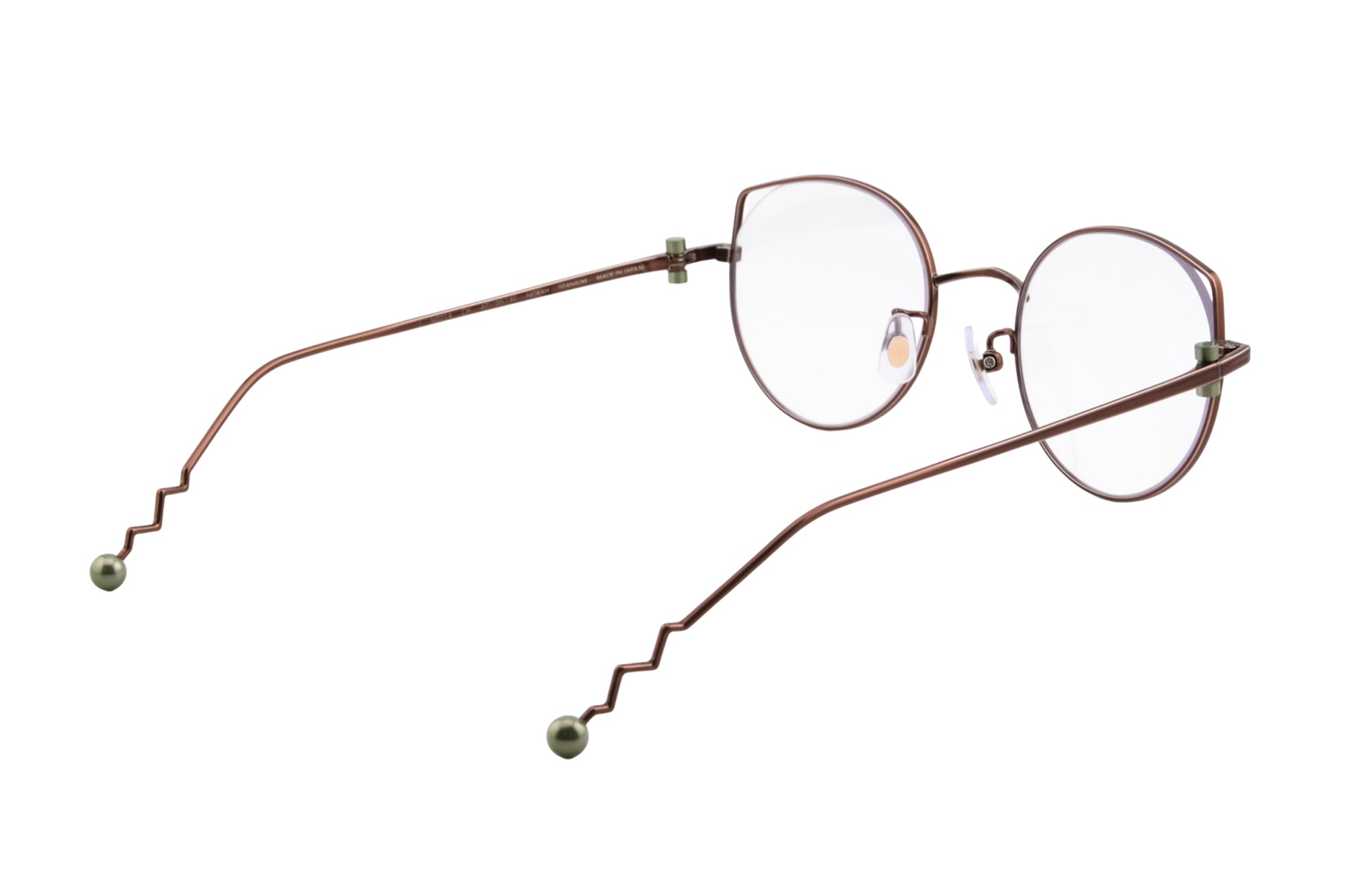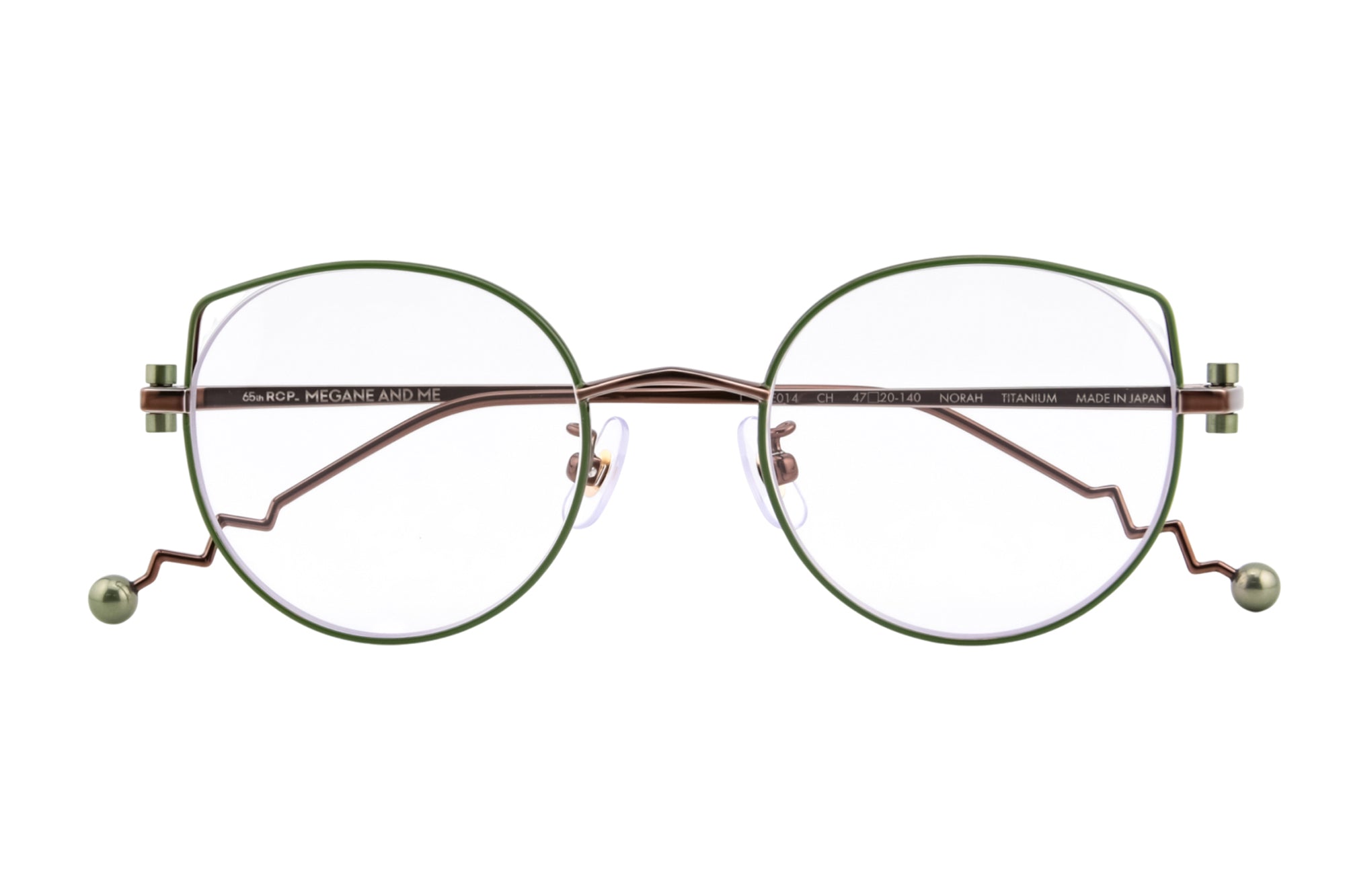 MEGANE AND MEの別注カラーは、毎回、私たちが設定したイメージをデザイナーさんにお伝えし制作しています。今回のテーマは「抹茶」。フロントリムの七宝カラーは、実際の抹茶の色から色出しして制作いただきました。