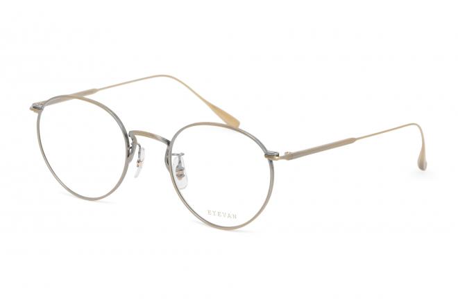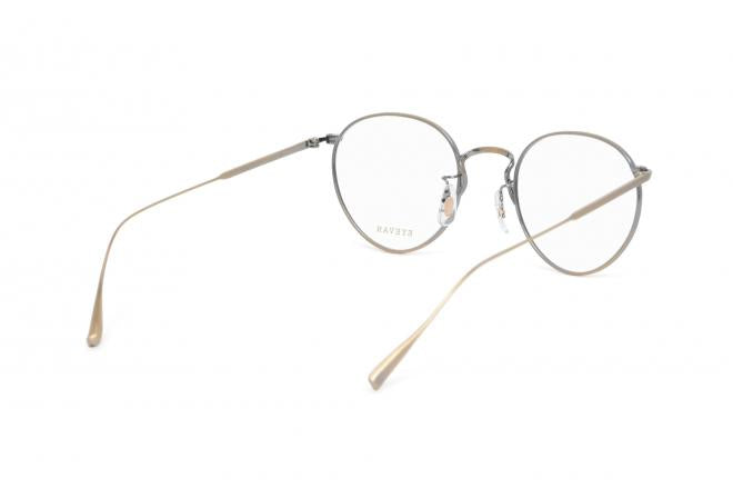 フロントブロー智そのものをヨロイ(フロント両端とヒンジとの接合部分)のデザインの一部とする手法は、30年代のヴィンテージフレームから着想を得たもので、それをEYEVANらしいデザインにモディファイ。